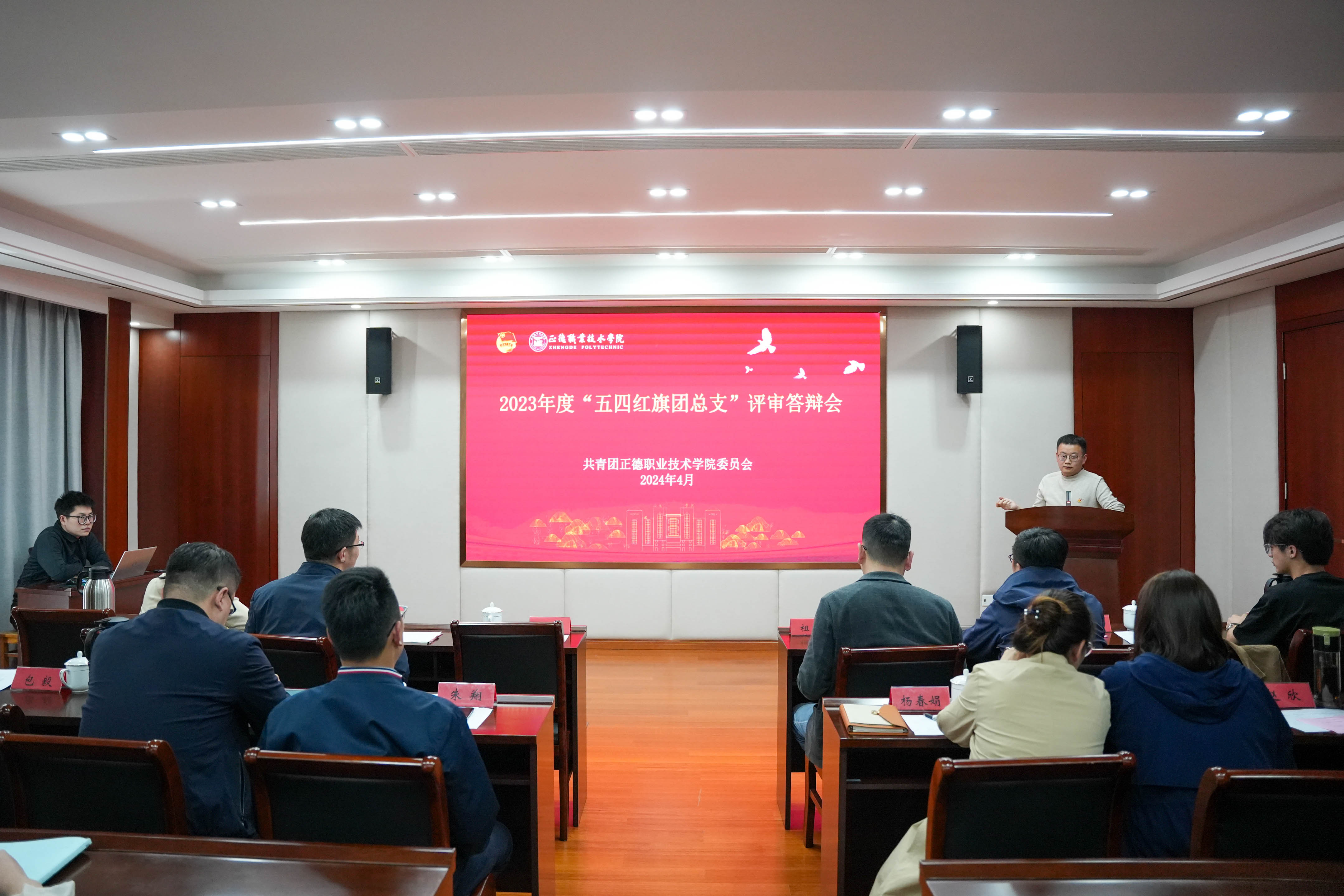 为深入贯彻党的二十大精神和习近平新时代中国特色社会主义思想,进一步深化共青团育人工作体系,推进各级团组织建设,搭建工作交流、风采展示、互学互鉴的平台,以评促建,以评促改,营造比学赶超的良好氛围,天博体育 团委于4月19日在5201会议室举行了正德职业技术天博体育 2023年度“五四红旗团总支”评审答辩会。党群工作部部长祖国、人事处处长孔文、党委学工部部长祝佳俊、教务处处长王燕、院团委书记黄晓帆出席答辩会并担任评委,各系党支部书记,全体辅导员参加此次答辩会。
