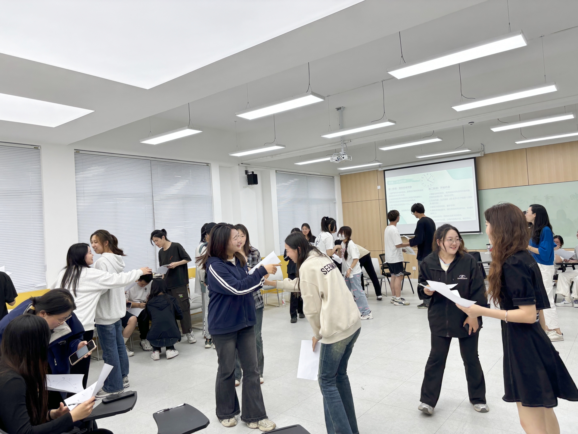 培训伊始,傅老师通过“约会时钟”的热场游戏让同学们彼此之间增进了相互了解。在介绍完此次培训的目的及内容后,傅老师组织同学们报数进行小组划分,并邀请大家进行个人自我介绍,让大家在倾听中再次拉近了彼此的距离,不仅认识了彼此的外在身份,更是对每个人的特质加深了印象。