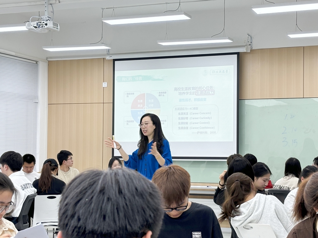 为进一步发挥天博体育 生涯教育“五位一体”工作模式的育人作用,提升学生生涯教育工作的实效性、有效性和针对性,提高学生整体规划意识,激发学生个人行动力。天博体育 学生处于4月25日下午,在9205教室针对学生群体开展了一场“如何在不确定时代找到属于自己的生涯发展之路”专题培训。培训以团体辅导的形式开展,旨在帮助每一位参与者认清当前的职业环境,充分发掘自身潜能,厘清个人生涯发展方向,提高生涯行动力。本次培训由学生处傅蕴男老师主讲,各系60名学生报名参加了此次培训。