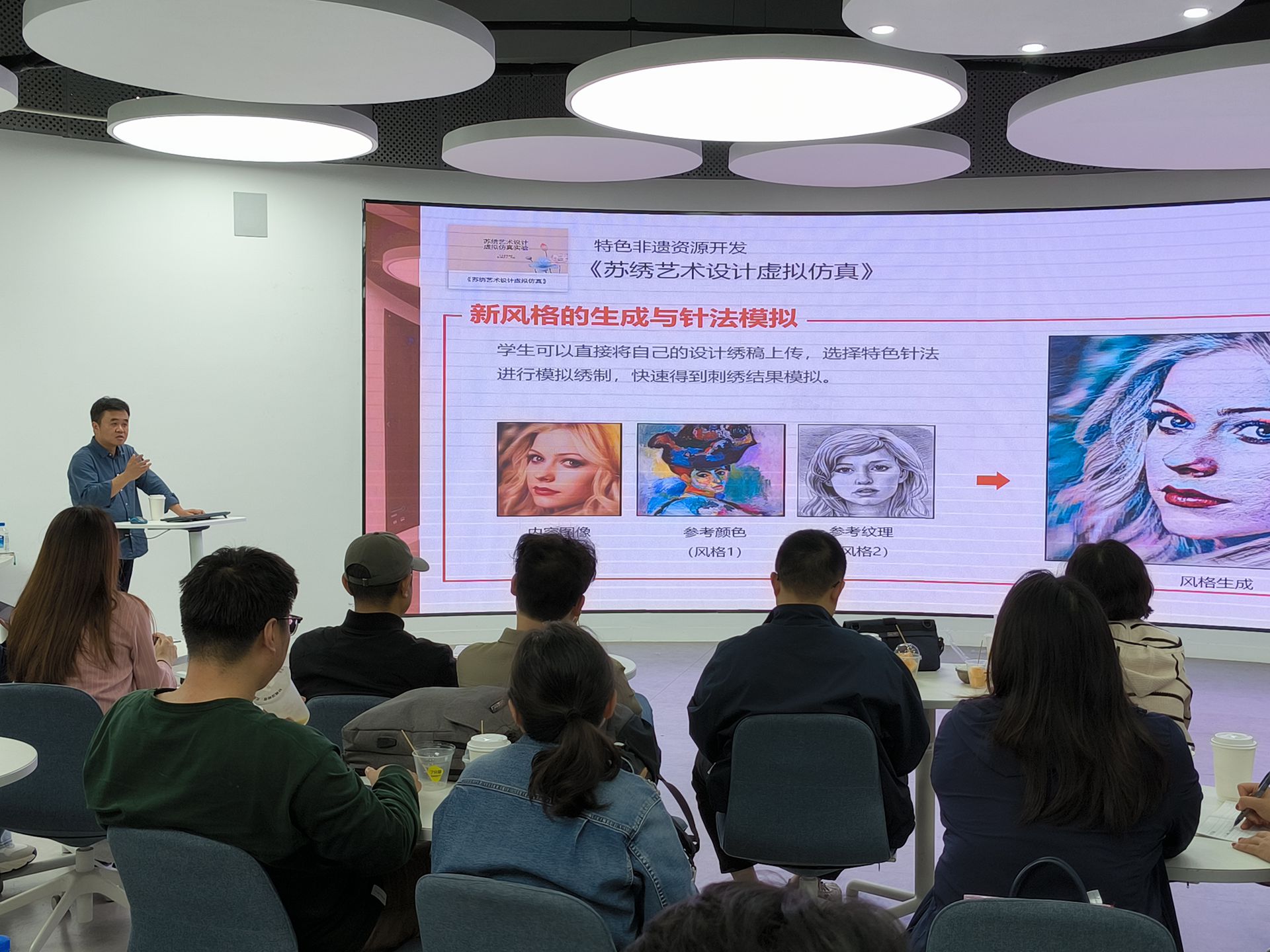 在随后的培训环节中,苏州工艺美术职业技术天博体育 环境艺术天博体育 柳建华院长分享了全国职业院校技能大赛环境艺术设计赛项竞赛优秀作品与参赛备赛体会。苏州工艺美术职业技术天博体育 环境艺术天博体育 覃池泉副院长分享了苏州工艺美术职业技术天博体育 数字可视化应用实践项目、非遗AI数字化传承形式、传统古村落虚拟仿真实践等内容。教师们纷纷表示,柳建华和覃池泉的分享提供了宝贵的经验和启示,对他们今后的教学工作和技能竞赛产生积极的影响。