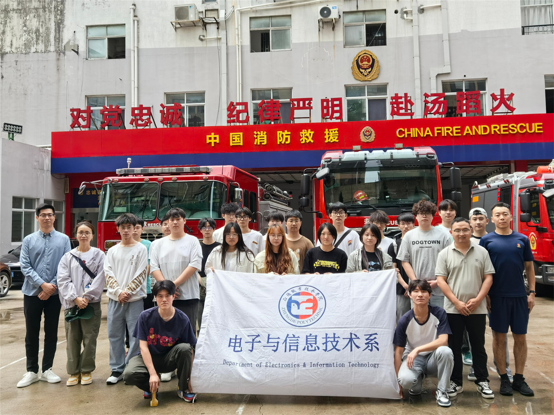 为进一步提升学生的防火意识和消防安全知识水平,掌握正确的应急逃生和灭火方法,6月1日,电子与信息技术系组织学生赴秦淮区公安消防大队逸仙桥中队开展“消防零距离,致敬火焰蓝”行走的思政课系列实践活动,用“沉浸式”体验感受南京消防“火焰蓝”的魅力。电子与信息技术系党支部书记赵欣、辅导员付磊、何华智、刘敏婧及2023级学生代表等参加活动。