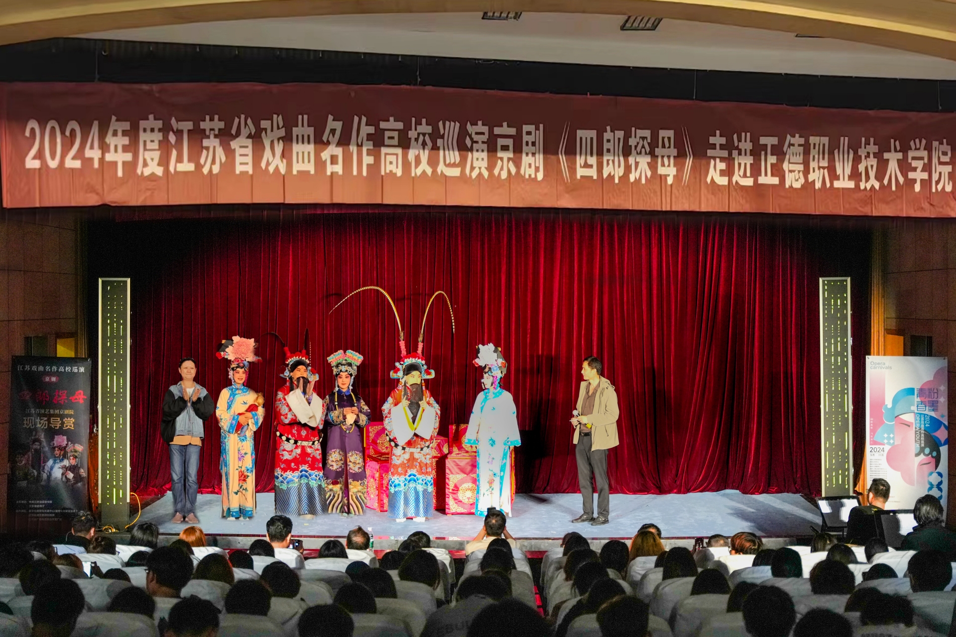 为更好地继承和弘扬中华优秀传统文化,让正德学子更加了解戏曲,5月30日,天博体育 团委与江苏省演艺集团京剧院联合开展“戏曲进天博体育 ”活动,京剧院经典剧目《四郎探母》在报告厅精彩上演,戏曲艺术家们用多种形式普及京剧基本知识,用清脆铿锵的梨园雅韵为师生们倾献一场精彩的视听盛宴。