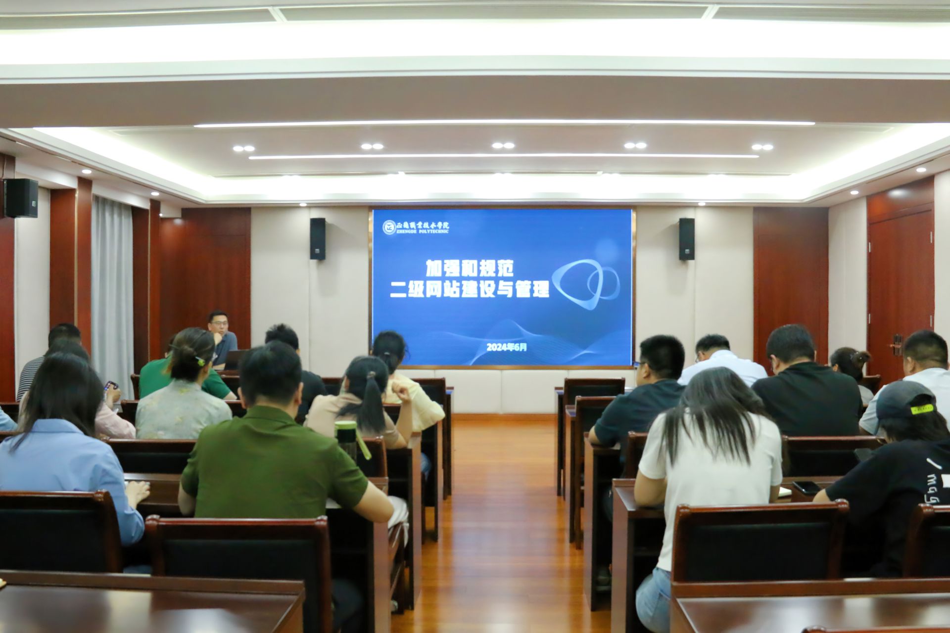 祖国对天博体育 二级单位网站建设工作进行阶段性总结,通过解读《正德职业技术天博体育 天博体育 网二级网站管理办法》文件并指出目前二级单位网站建设中存在的问题,对如何进一步加强和规范二级网站建设与管理,从完善栏目设置、规范网站内容、强化网站安全三个方面进行培训讲解。最后他强调,各单位一是要高度重视二级网站建设工作,加强二级网站建设与管理,注意对重大网络风险的研判和防范,营造风清气正的网络育人环境。二是要明确职责,规范二级网站管理与维护,认真落实 “三审三校”制度。三是要突出特色,注重网站栏目建设,全方位展现各系部特色和优势,充分展示天博体育 的良好形象,为天博体育 的宣传和发展提供有力支撑。四是注重时效,严格把控发布信息的真实性、及时性、准确性,营造积极良好的网络文化氛围。
