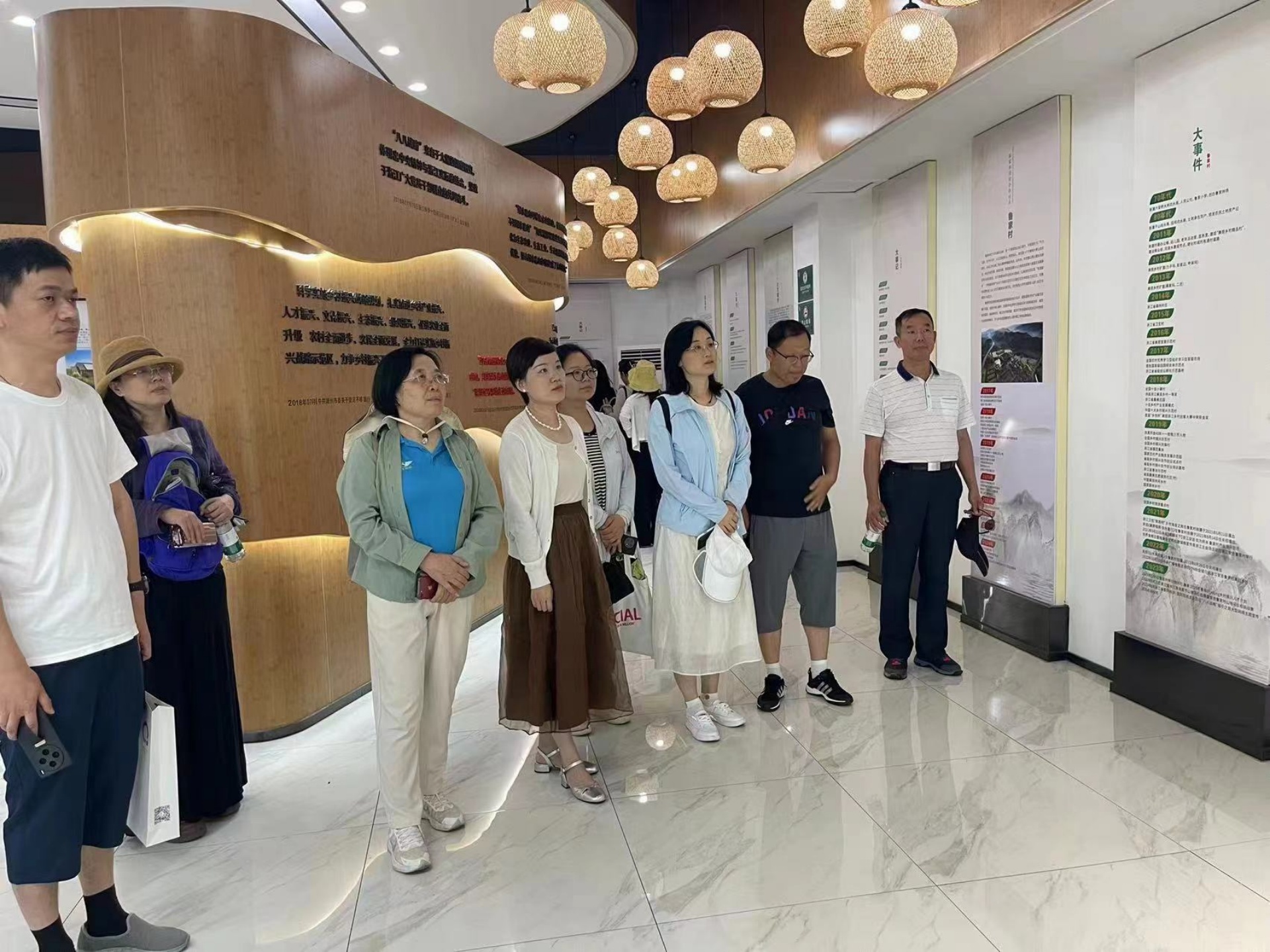 在讲解员的热情带领下,团队来到了“两山”理论的实践地——全国乡村振兴示范村鲁家村。鲁家村将“两山”理论深入贯彻到乡村建设中,打造了“产业兴旺、生态宜居、乡风文明、治理有效、生活富裕”的田园综合体,实现了从“一穷二白”到“村强民富”的转变,创造了“两山”理论的鲁家样本。大家在沉浸式体验鲁家风光的同时,也感受到了鲁家村干部带领村民们不畏艰难,开创鲁家发展新境界的奋进精神。