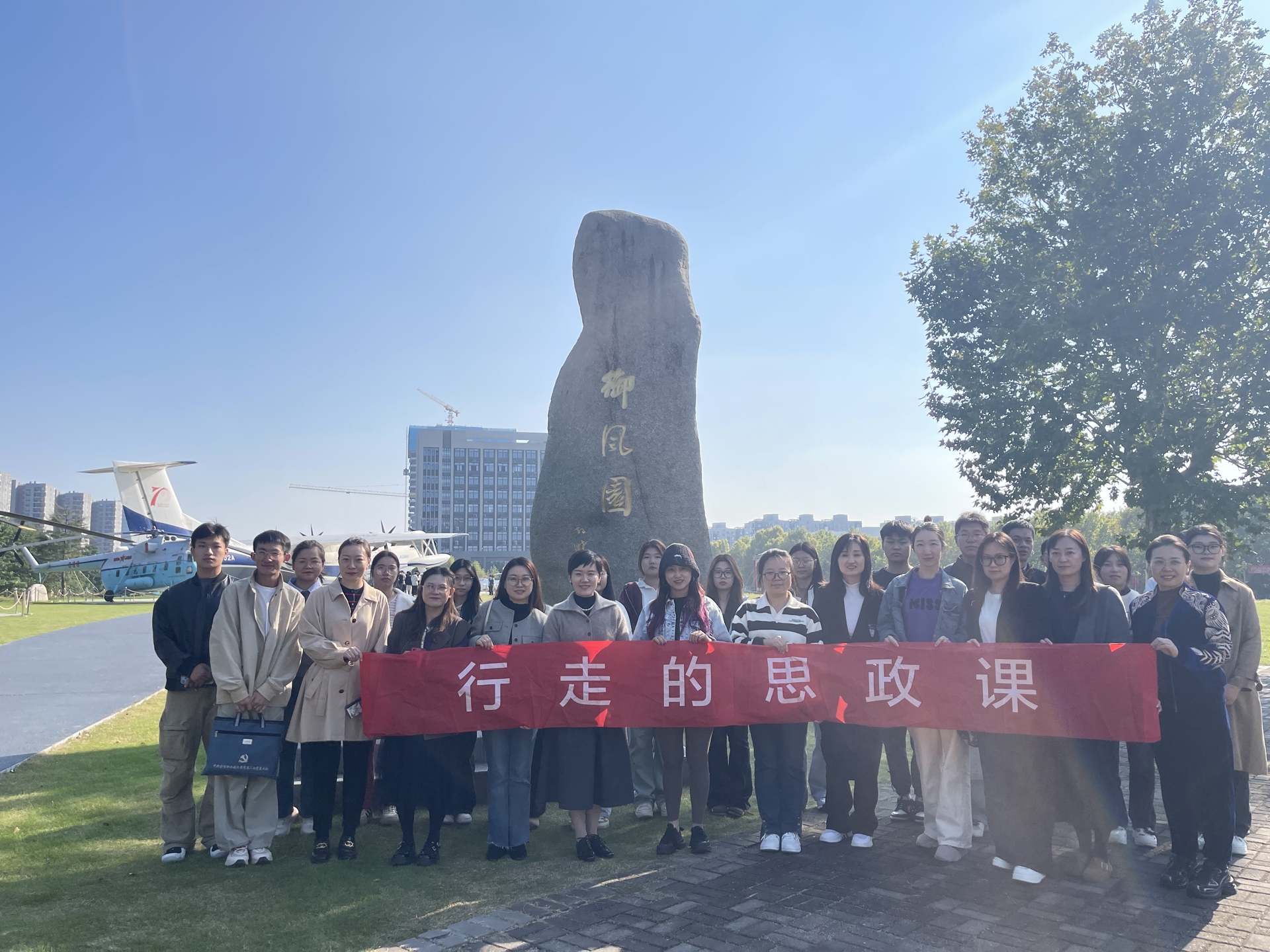 10月24日下午,“四校联盟”在天博体育 思政教研部的组织下,开展了一堂别开生面的思政实践课。来自天博体育 、金肯职业技术天博体育 、南京视觉艺术职业天博体育 、钟山职业技术天博体育 近四十名思政课教师与学生代表,共同走进南京航空航天大学御风园博物馆,通过实地参观与现场教学,将思政课堂延伸至户外,开启了一场生动的“行走的思政课”。