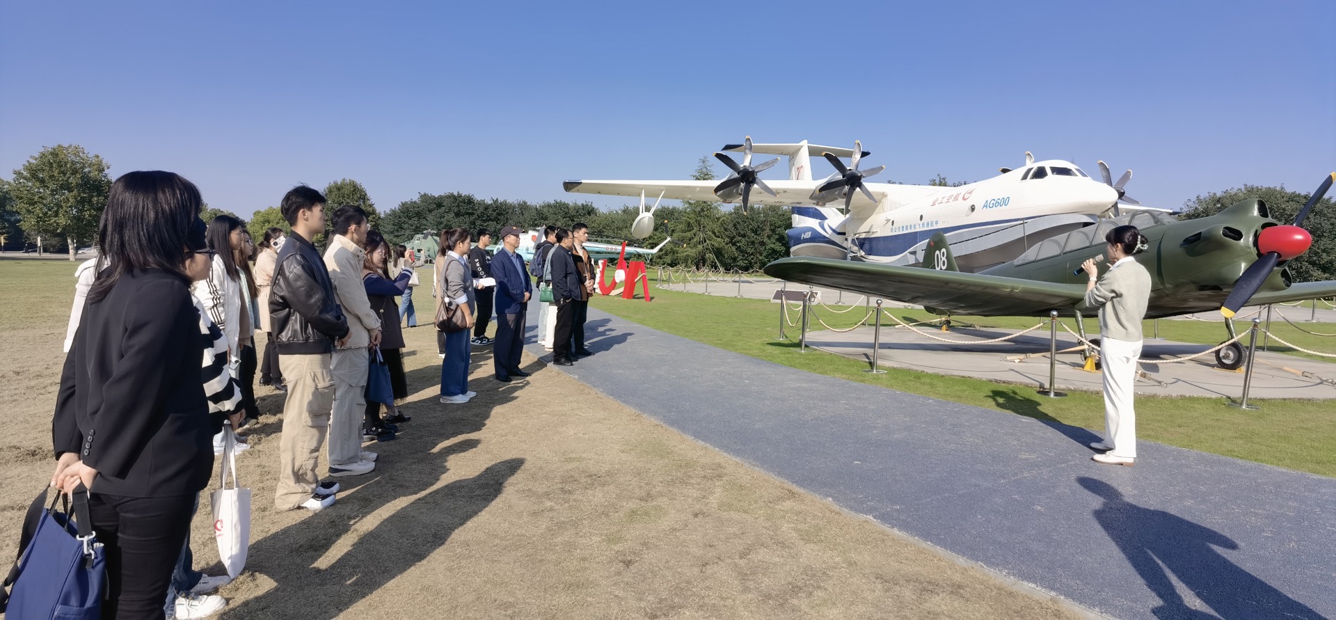 御风园作为南京航空航天大学天博体育 文化的重要载体,蕴含着丰富的航空航天文化与科技创新精神。讲解员为大家讲解了新中国自行生产的第一型飞机初教5、第一架大型无人靶机、我国自行设计制造的歼8和歼-8Ⅱ歼击机、大型水陆两用飞机AG600静力试验机、长征四号运载火箭、参与建国七十周年阅兵的无人机等国之重器背后的故事。每一个展品都成为了思政课的鲜活教材,师生们全方位了解空航天装备、沉浸式感受国防文化,了解了一代代国防工业科技工作者航空报国、敢于奉献的家国情怀。