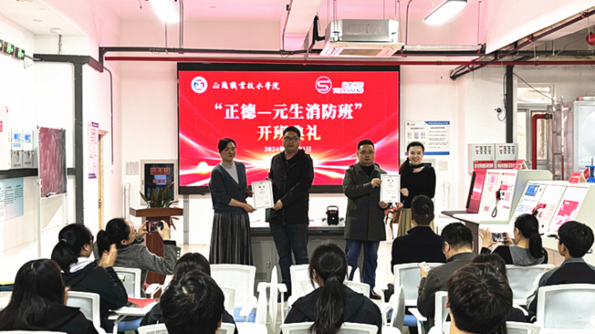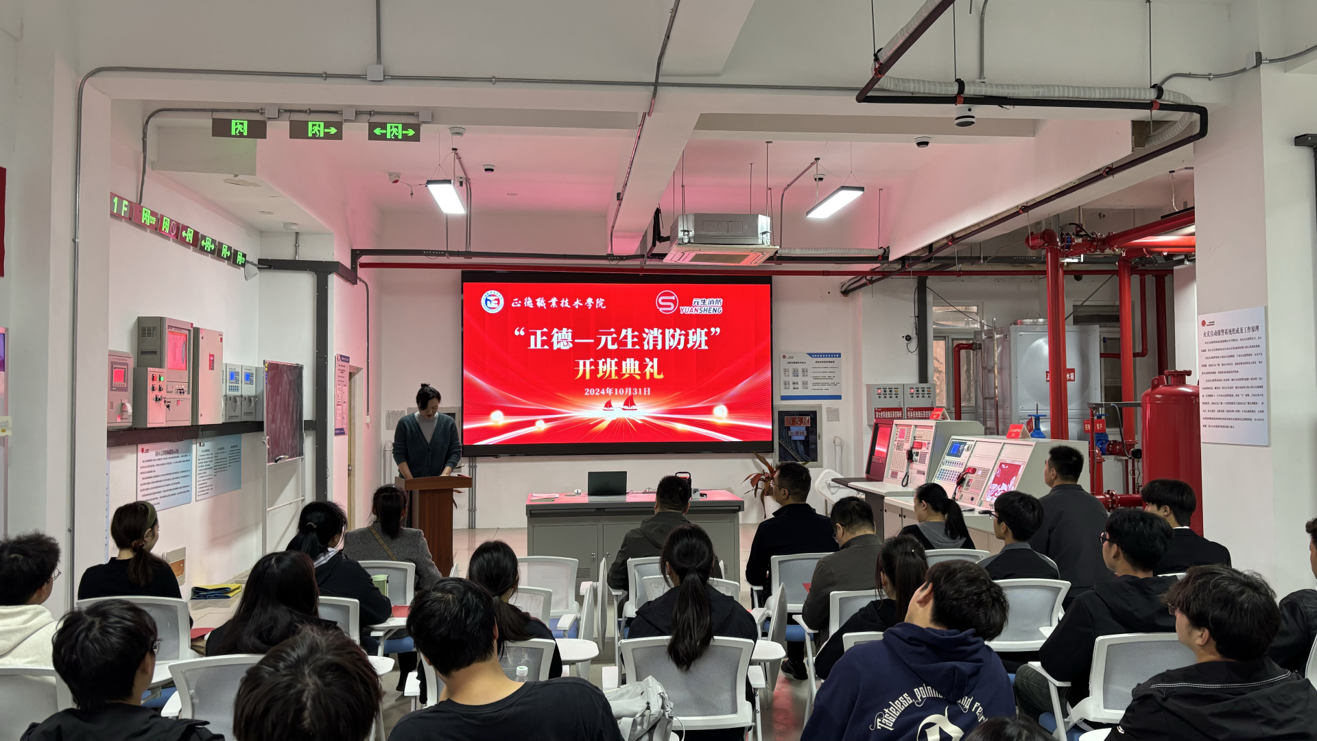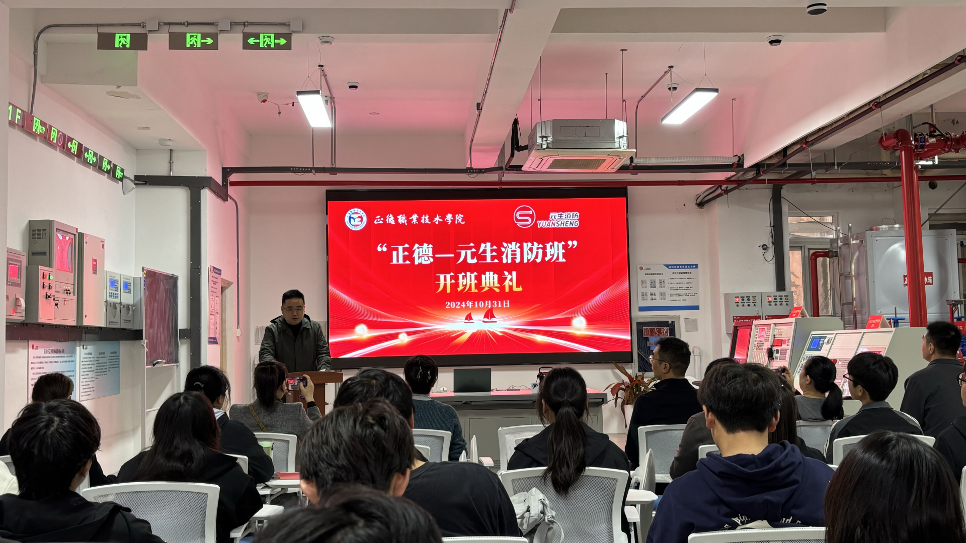 10月31日下午,“正德—元生消防班”开班仪式在正德-元生消防综合实训中心隆重举行。南京元生消防工程有限公司总经理刘臻、副总经理朱雯洁等企业代表、天博体育 院长助理、招就处处长王墀、汽车与机电工程系系主任任丽君等老师出席活动。典礼由汽车与机电工程系系副主任虞骏卿主持。