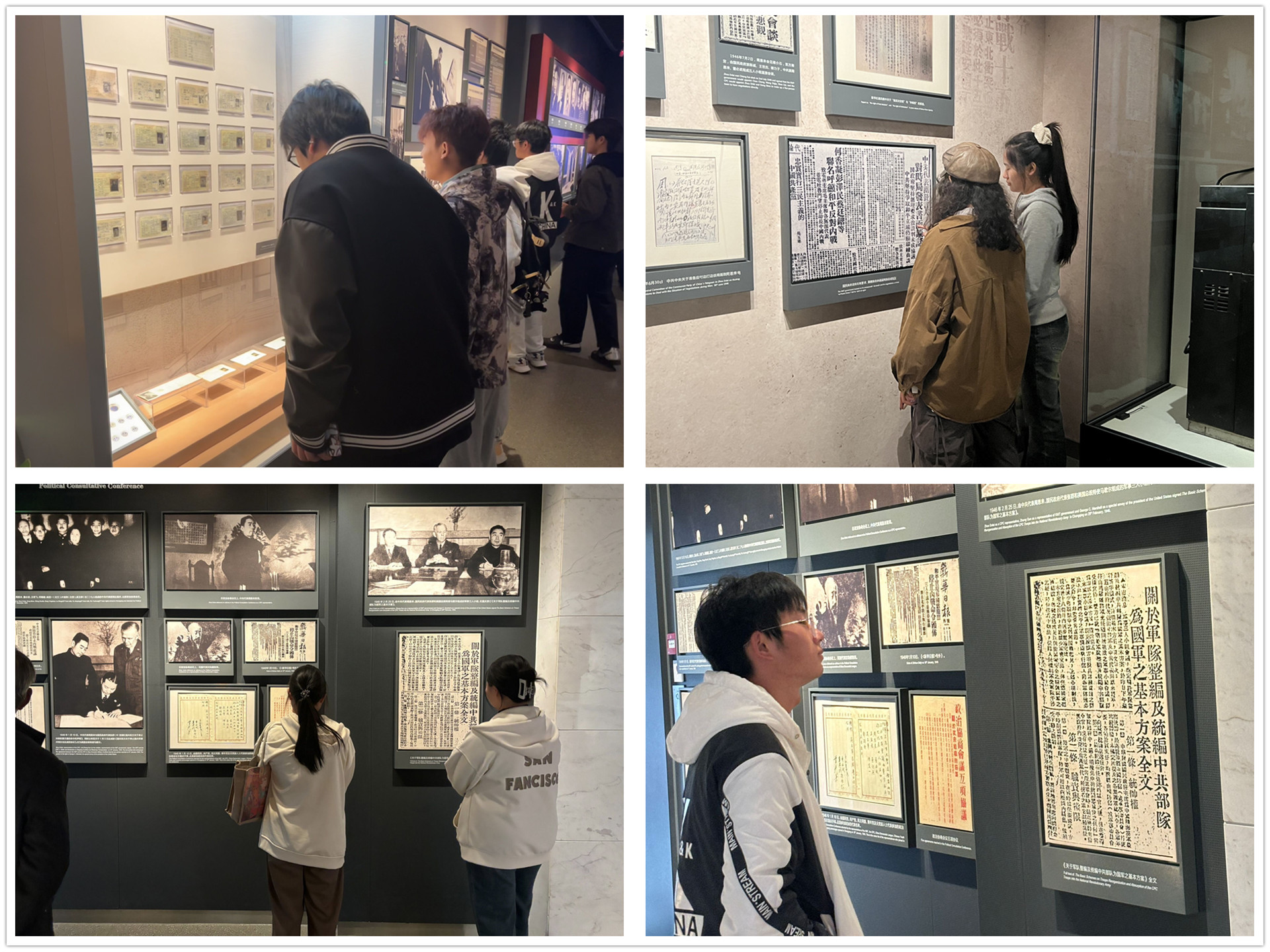 同学们在展厅内观看了一系列宝贵视频资料、历史照片、实物展品等,一同追忆着先驱者们披荆斩棘、英勇奋斗的光辉历程。在纪念馆的实物展示区,同学们通过一件件实物,如旧时的文件、通讯工具等,深刻感受到了革命先辈们为了民族独立和人民幸福所付出的巨大牺牲和不懈努力。
