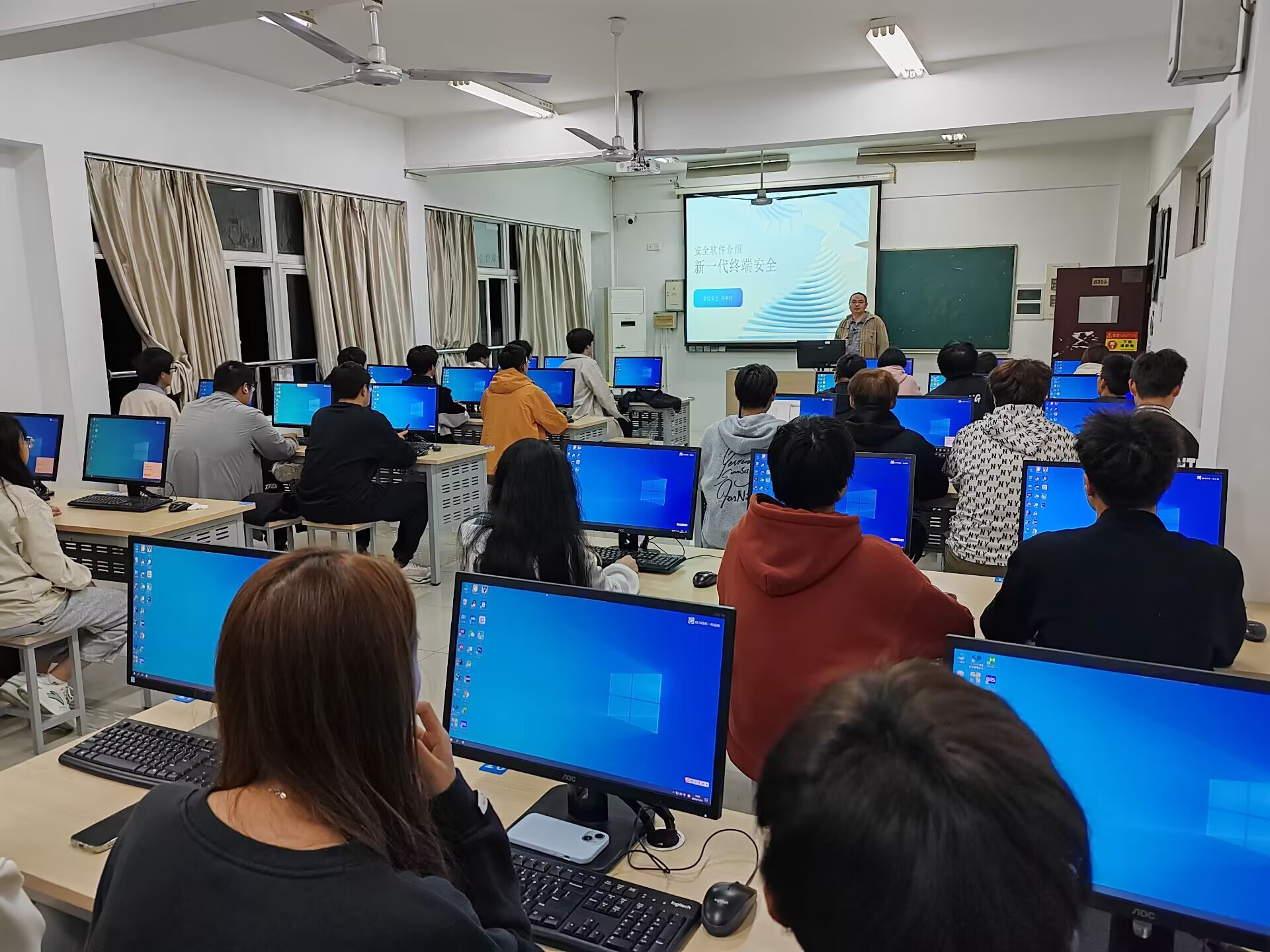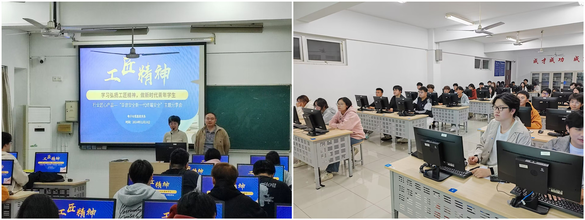为了进一步增强学生们的行业认知,紧跟当前技术趋势的步伐,11月14日,电子与信息技术系邀请亚信安全科技股份有限公司举办学习“工匠精神”专题讲座。亚信安全终端安全产品资深技术架构师孙中轩、电子与信息技术系专任教师李红艳以及2024级学生参加活动。