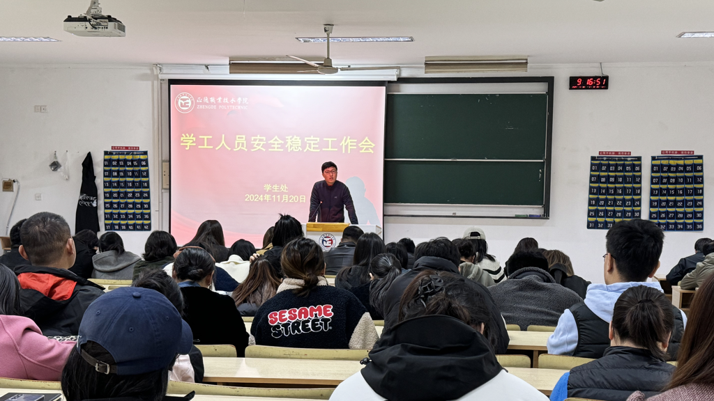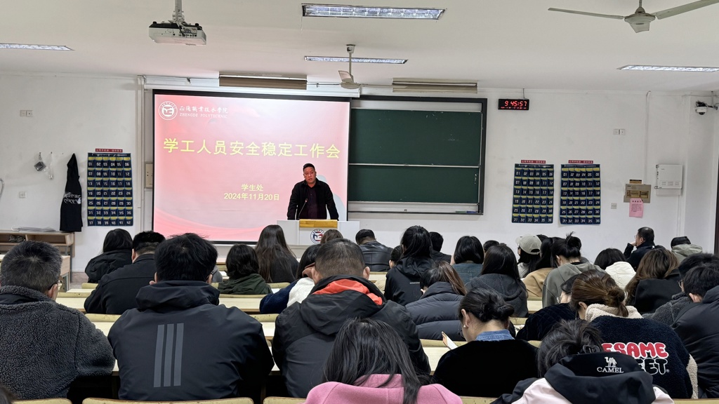 为深入贯彻并积极响应上级部门关于加强天博体育 安全稳定工作的明确要求,严守天博体育 安全工作底线,提高师生安全防范意识。天博体育 于11月20日组织召开了学工人员安全稳定工作会议。学生处、后勤保卫处负责人,各系学生工作负责人以及全体辅导员参会。会议由学生处处长祝佳俊主持。