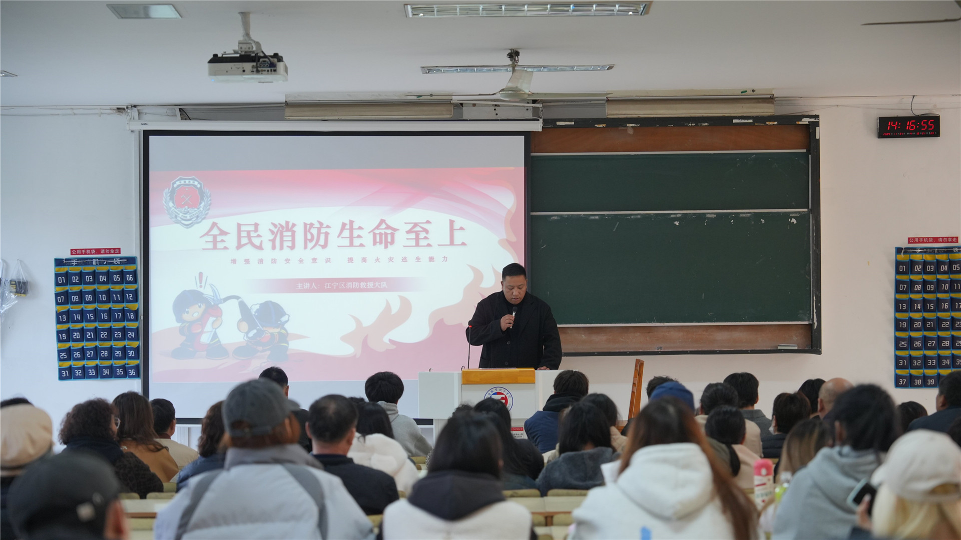 党委保卫部、后勤保卫处处长陈宏波在现场进行了动员讲话,随后百家湖消防队消防员为参演人员开展消防安全知识培训,详细介绍了各种消防器材的种类、性能、使用方法,以及不同情况下火灾应急处理和逃生技能等方面的知识,强调要加强电动车的正确使用和安全管理,做到防范于未然。