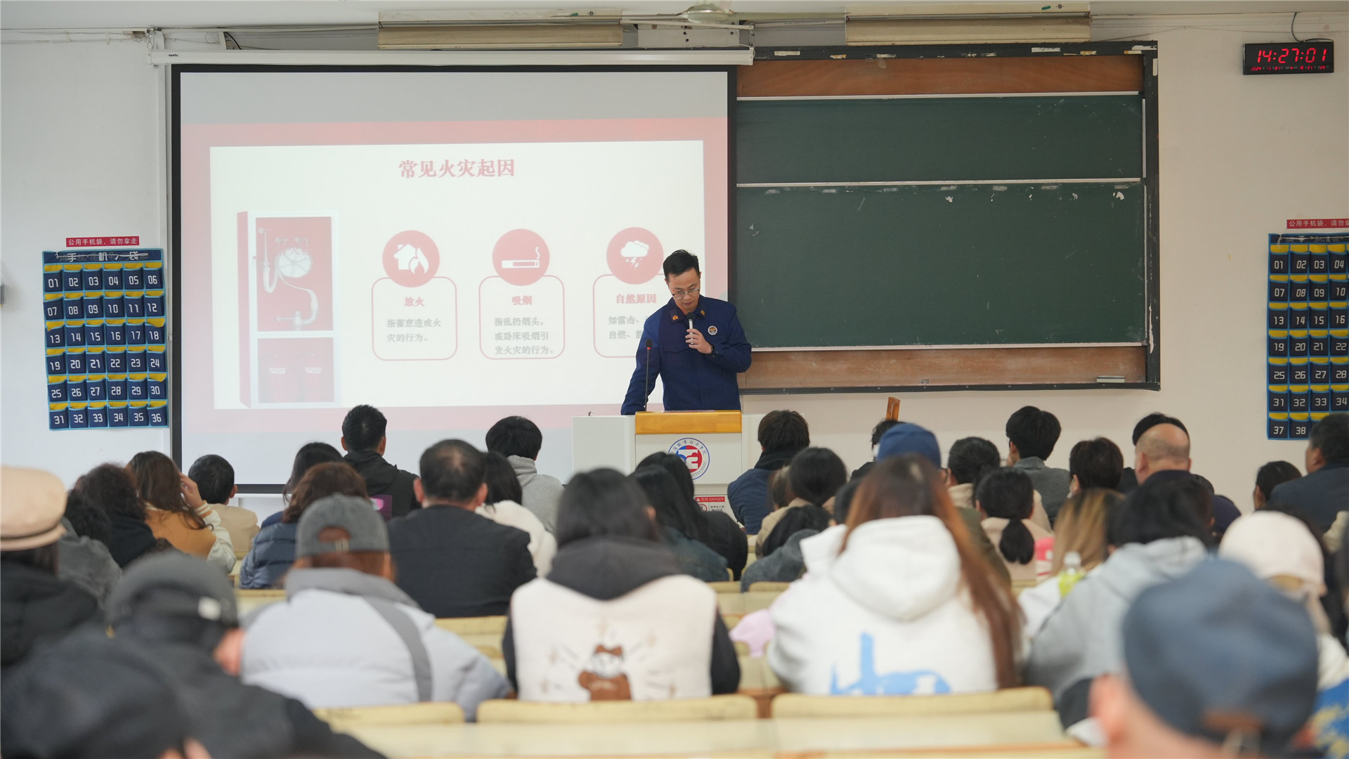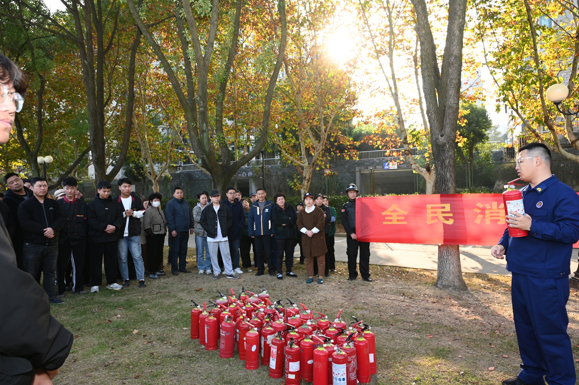 为进一步提高师生员工的消防安全素质,增强应对突发火情的处置能力,根据上级《2024年消防宣传月活动方案》的通知要求,11月21日下午,后勤保卫处组织师生代表和后勤社会化人员100余人在1102教室、运动馆南侧草坪开展消防安全知识培训及灭火演练。
