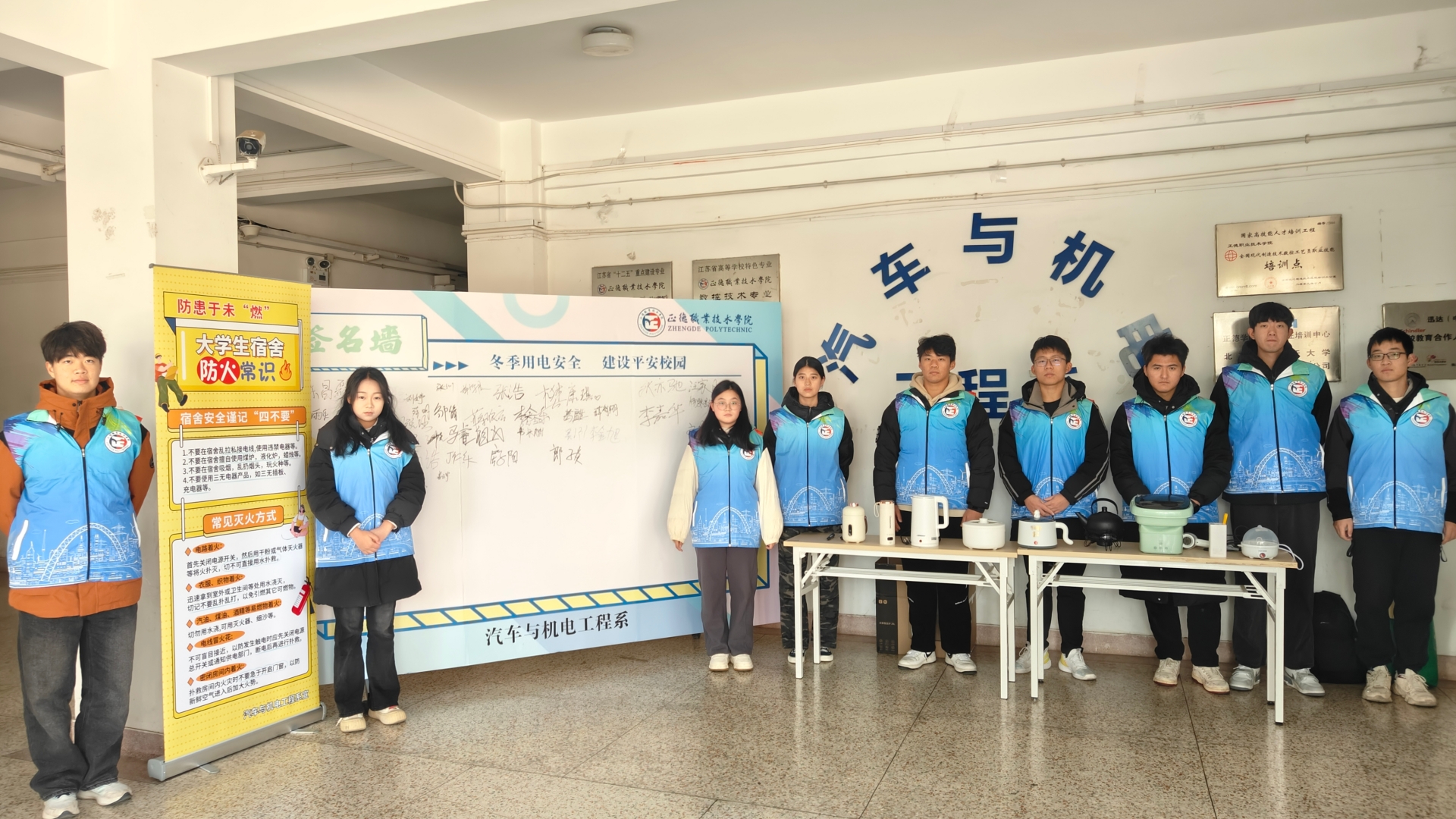 冬季,是用电需求增大且安全隐患突显的季节,为了提高学生的安全意识、营造良好的宿舍环境,维护天博体育 寝室安全稳定。12月18日,汽车与机电工程系在七号楼一楼大厅开展“冬季用电安全,建设平安天博体育 ”活动。