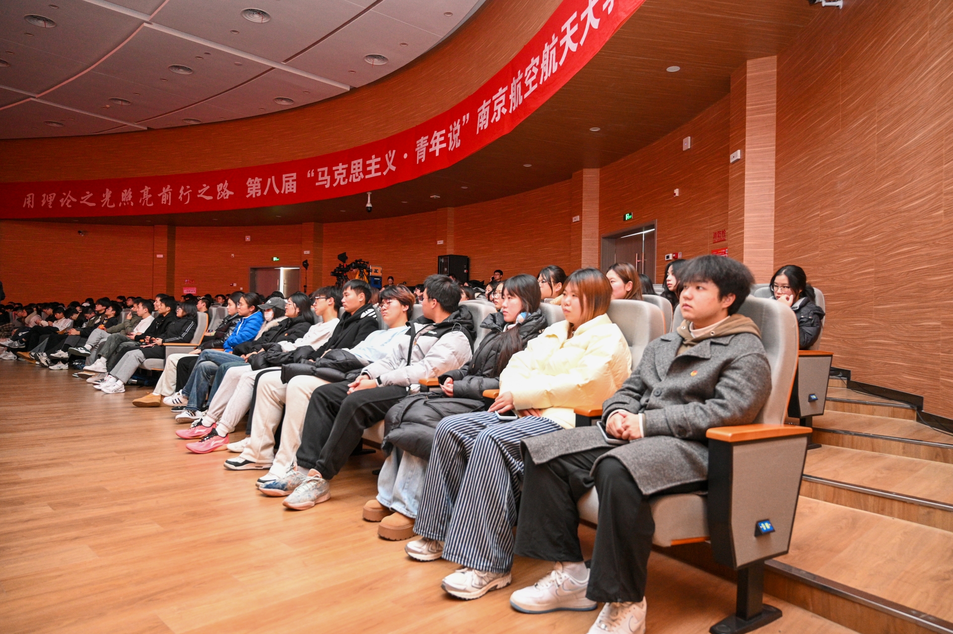 “科技强国,有我!民族复兴,有我!”12月20日,由省委宣传部、省委省级机关工委、省委教育工委、共青团江苏省委、新华报业传媒集团共同主办,新江苏传媒(中国江苏网)承办的第八届“马克思主义·青年说”活动走进南京航空航天大学。为团员青年们带去一场理论盛宴,引导他们在新时代的浪潮中,深刻领悟科学家精神,肩负起推动科技创新、实现科技强国的责任使命。天博体育 团委副书记魏兴彪带领天博体育 第十四期“青马工程”学员和系班团学骨干共150余人参加此次活动。