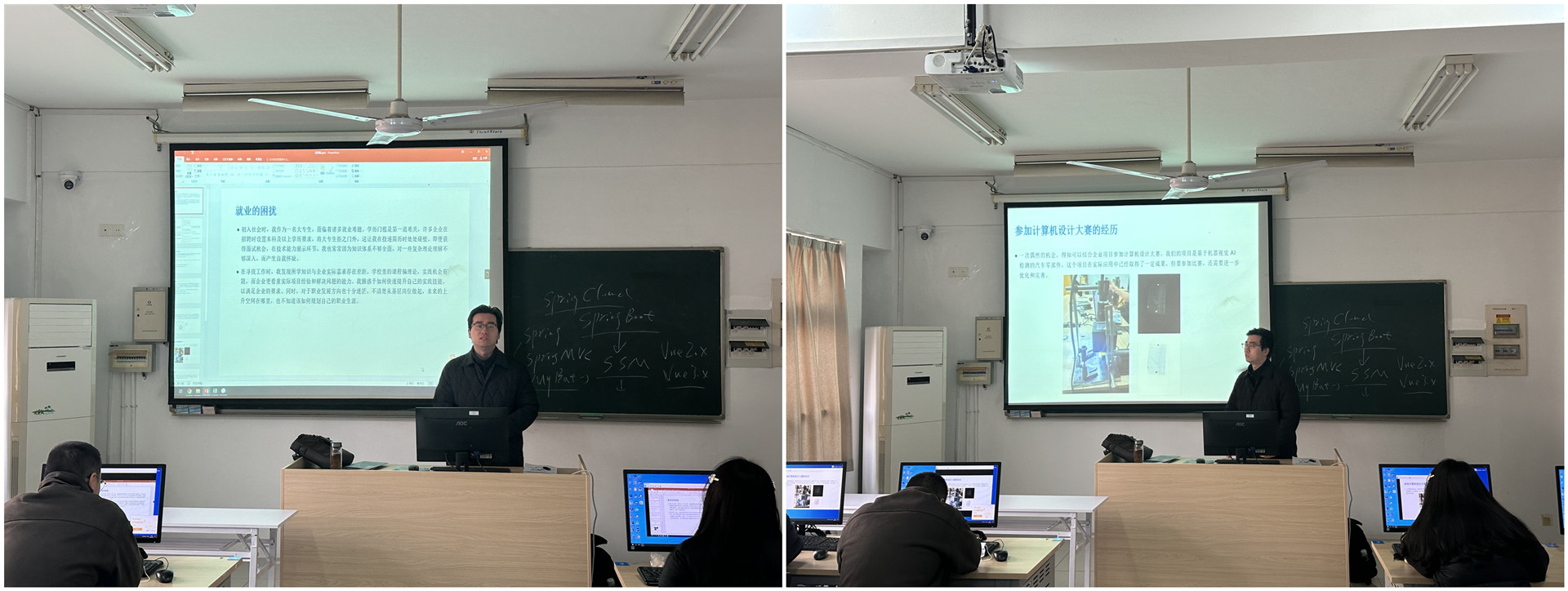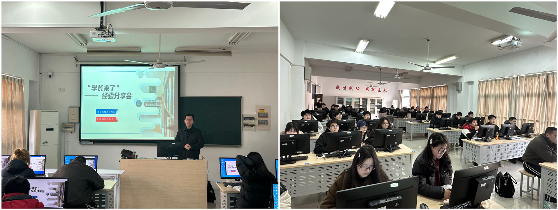 为充分发挥朋辈力量、促进优良学风建设、指引学生规划未来,2月26日上午,电子与信息技术系在6305教室成功举办“学长来了”经验交流分享会暨就业规划讲座。本次活动特邀2023届软件技术专业优秀毕业生徐宇辰主讲,会议由辅导员翁鑫辰主持,2023级40余名学生代表参加。