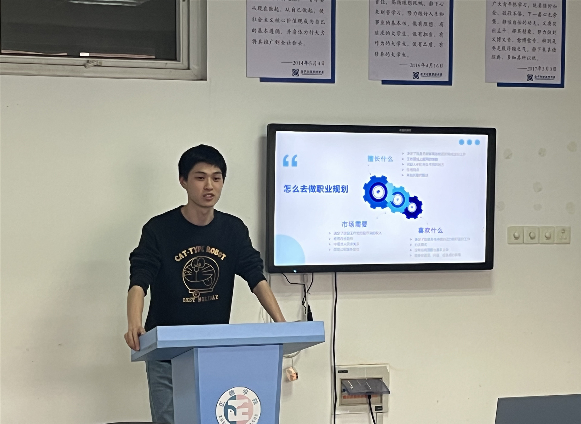 为帮助2024级学生更好地规划大学生活,深度洞察IT行业前沿发展趋势,确立清晰的学业与职业目标,4月16日下午,电子与信息技术系举办“学长来了”之校友返校成长故事交流会。此次交流会特别邀请了2017级软件技术专业优秀毕业生郑伟泽作为主讲嘉宾,电子与信息技术系党支部书记、副主任赵欣,2024级学生代表参加交流会,会议由2024级辅导员刘敏婧主持。
