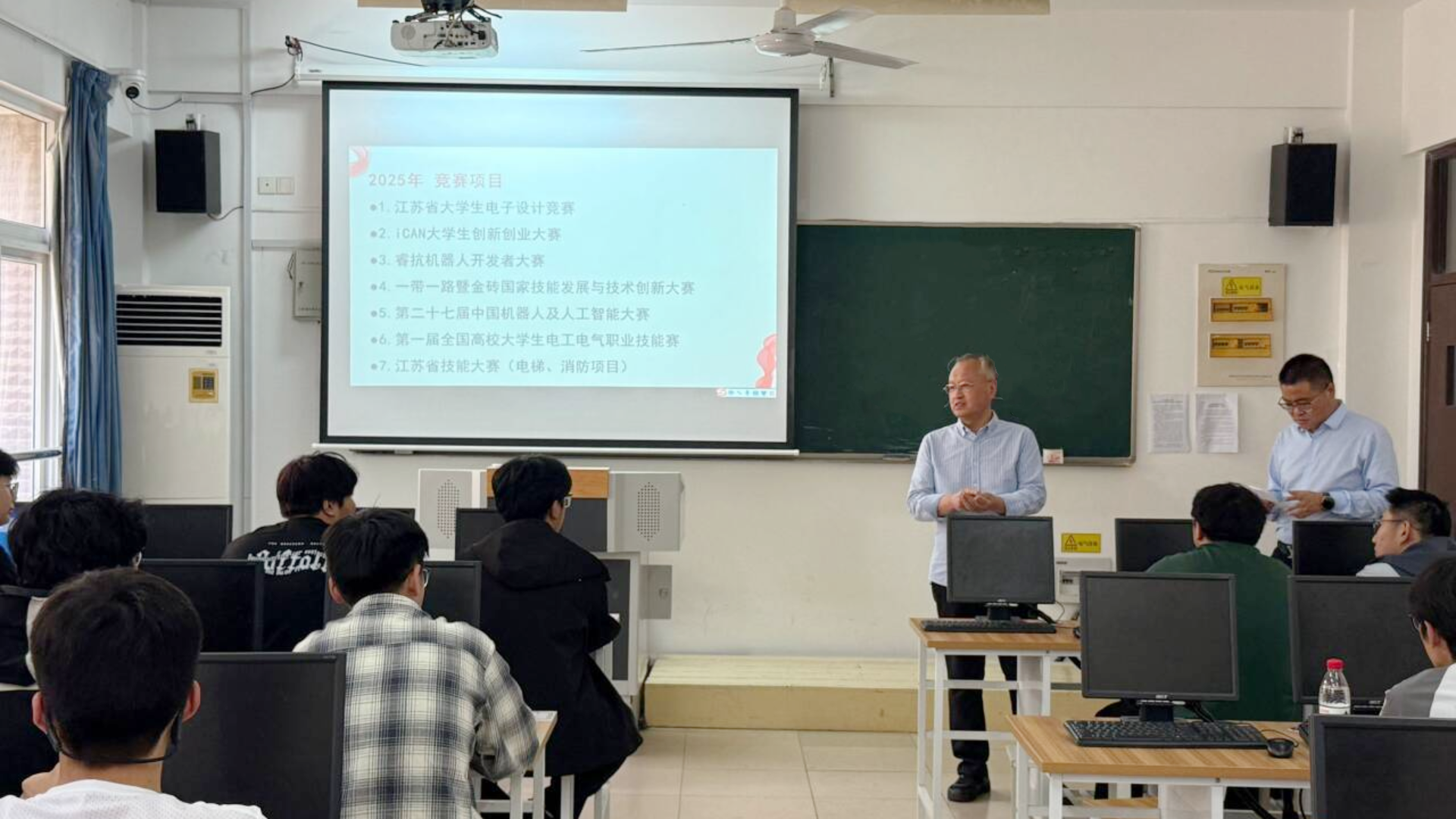 为深化产教融合,培养学生的创新意识和创新能力,4月25日,汽车与机电工程系在7205教室开展2025年省级技能竞赛赛前动员会。会议由赛事团队负责人王磊主持,系主任任丽君、专业教师曾繁明以及2024级电气自动化技术、机电一体化技术、工业机器人技术专业40余名学子参加,共绘技能成长蓝图。
