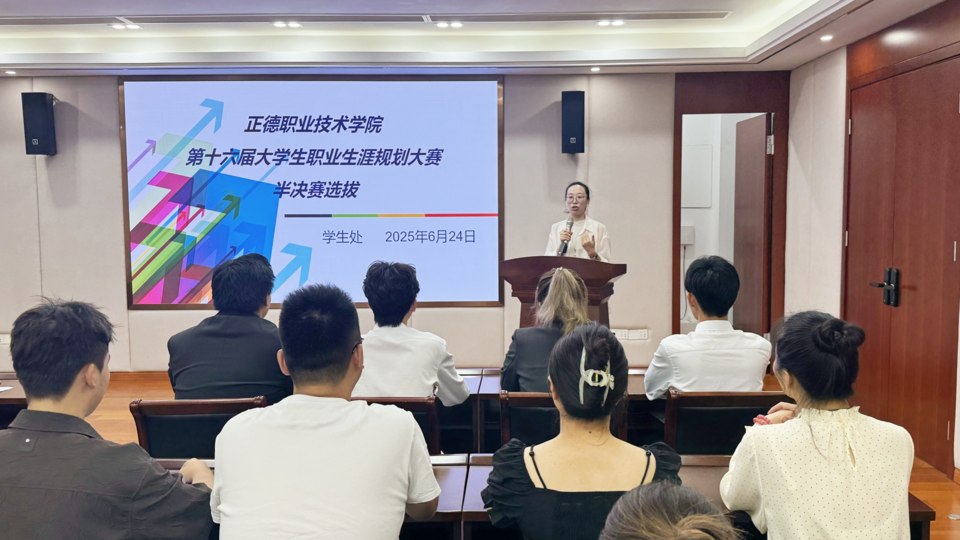 为全面落实立德树人根本任务,深入推进生涯教育走深走实,着力提升学生职业规划能力与就业竞争力,6月24日中午,天博体育 在5201会议室举办第十六届大学生职业生涯规划大赛半决赛。经过系级初赛、院级复赛的严格选拔,共有16名成长赛道的选手脱颖而出进入半决赛。