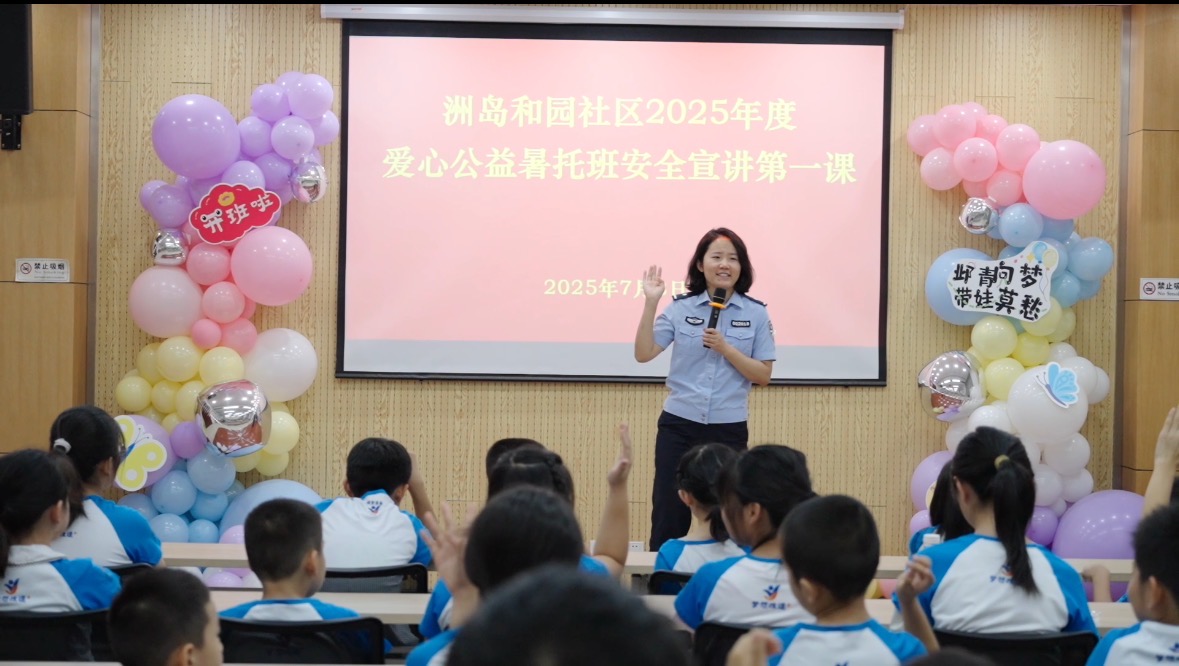 “小雨滴夏日童行”社会实践团队抵达南京市洲岛和园社区宁小蜂驿站后,成员们与社区工作人员、托管班小学员们在温馨的开班仪式上正式见面,精心准备的开场互动迅速拉近了与孩子们的距离,为后续活动顺利开展筑牢坚实基础。开场后,社区工作人员结合案例讲解了暑期活动安全注意事项,孩子们清澈的眼神和认真的态度,让成员们深感责任重大。