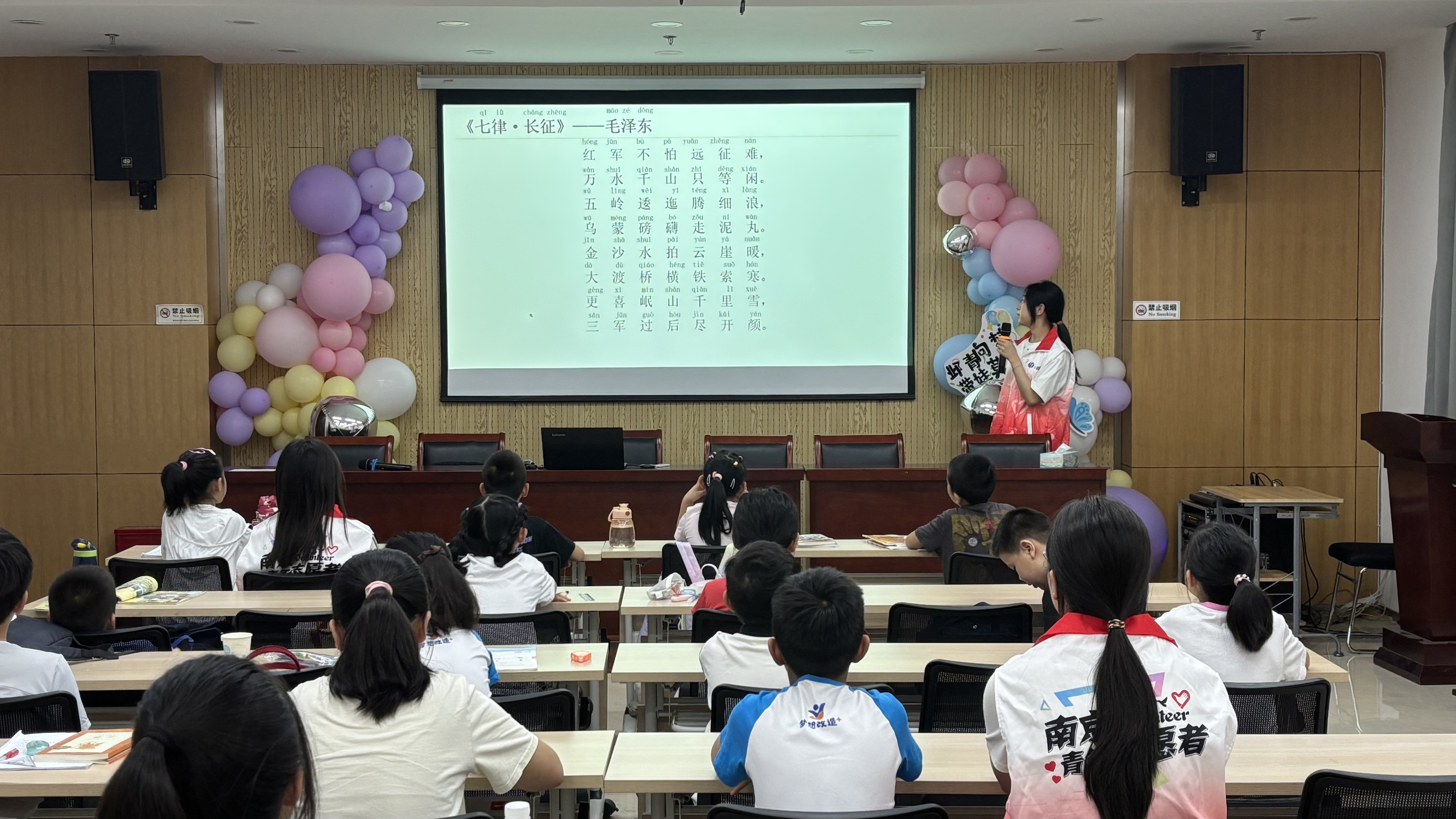实践首周正值托管班“科技启蒙”主题周,成员们迅速融入角色,成为老师的得力助手和孩子们的贴心伙伴。清晨的“红色诗词朗诵”环节,大家或领读或指导,琅琅书声浸润童心,红色基因悄然传承。在课业辅导环节,成员们耐心细致地为孩子们答疑解惑,营造良好的学习氛围。