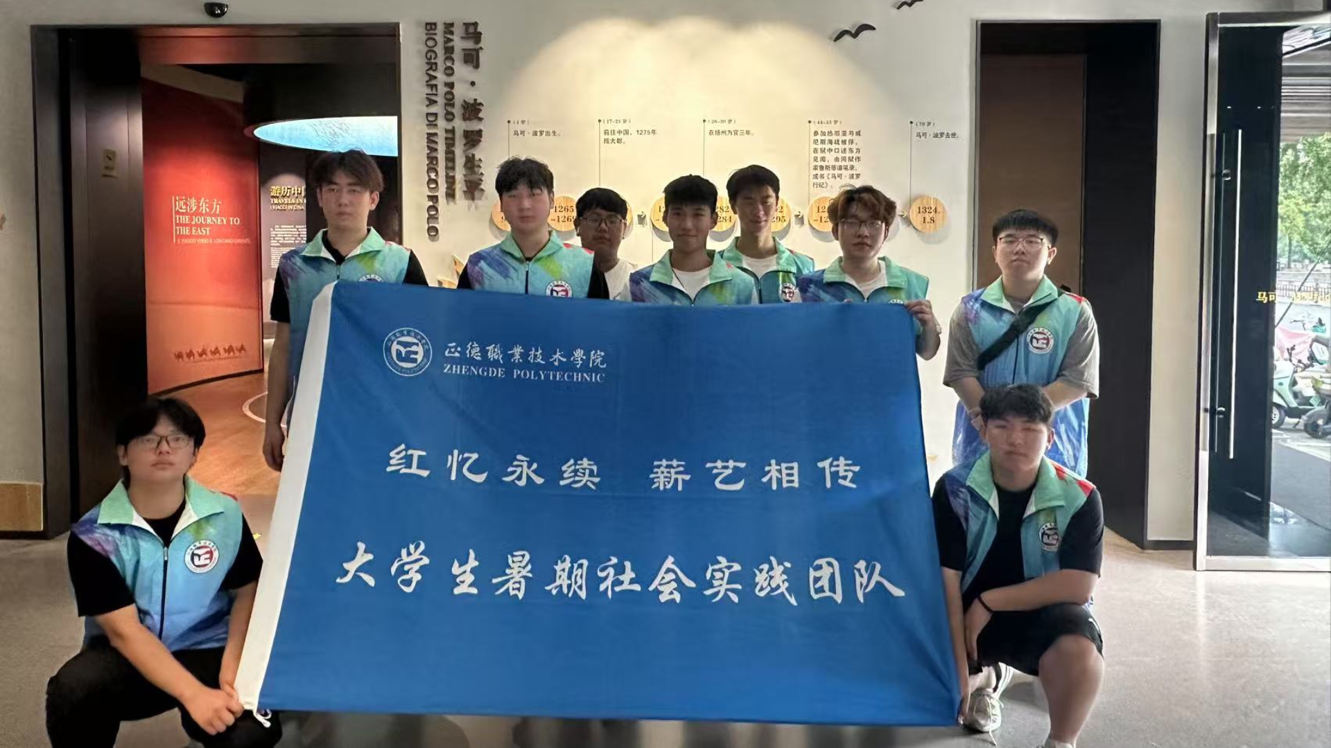 在具有深厚历史底蕴的阮家祠堂中,陈列着阮氏子弟1927年秘密印刷革命刊物的史料;泛黄的《新青年》杂志与清代《阮氏家谱》整齐地摆放在船厅议事处的仿古桌案上,他们见证了家族文化脉络与革命思潮的激烈碰撞。实践团队在马可·波罗纪念馆中追寻这位伟大旅行家在扬州留下的踪迹,了解到马可·波罗为推动东西方文化交流所作出的杰出贡献,对这位文化交流的先驱者充满了崇敬之情。