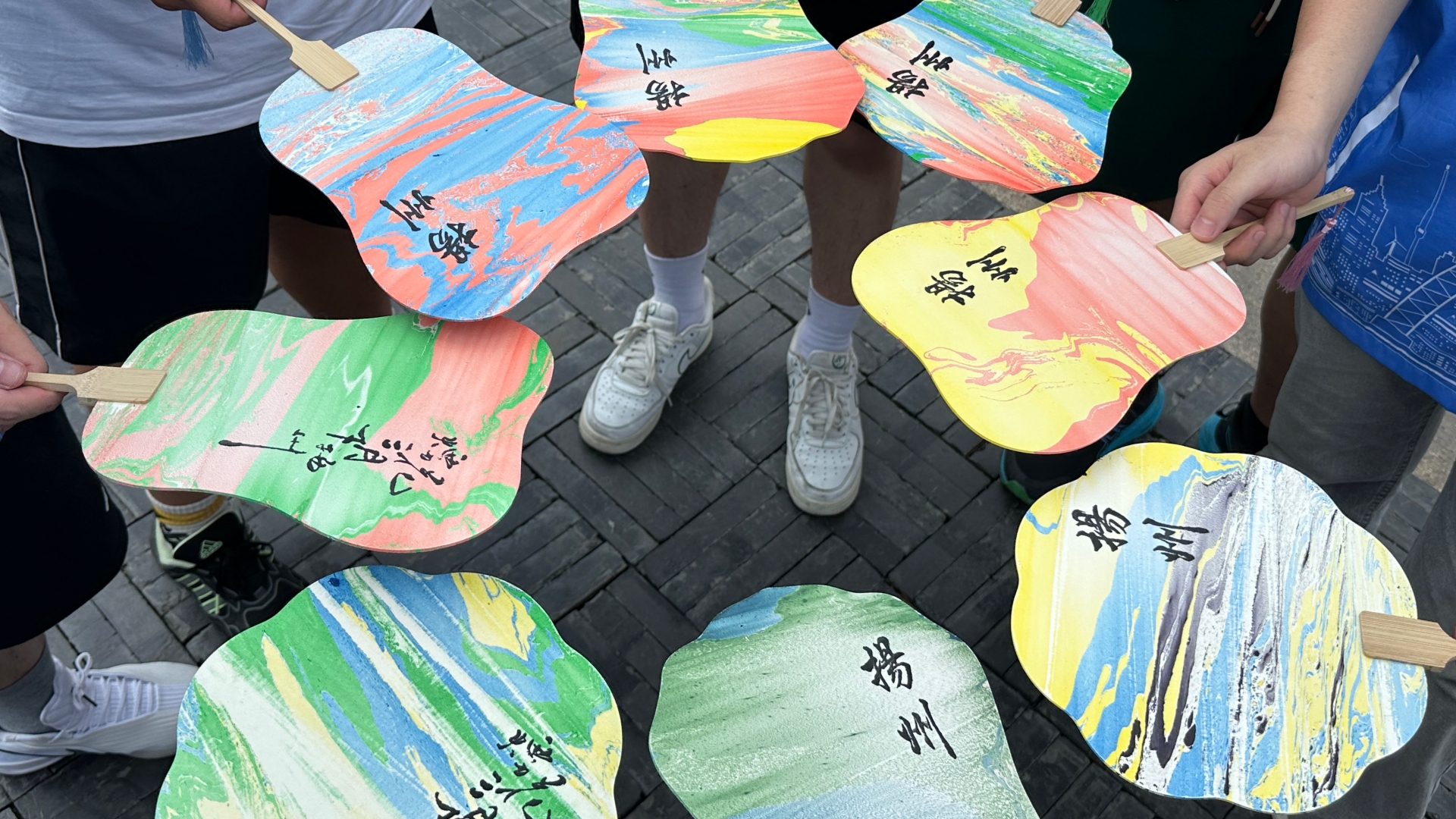 为了更好地了解非遗,体验非遗,成员们参加了漆扇制作体验课,在漆扇工坊,指尖的技艺演绎着科学奥秘,靛蓝染液流淌,素白扇面浸入,氧化还原反应晕染出千年智慧,在非遗老师的悉心指导下,成员们亲手创作出独具特色的作品,非遗的概念,在此刻升腾的靛蓝色泽中变得可触可感,大家也深切体会到传统工艺中蕴含的匠心精神以及其中的艰辛。