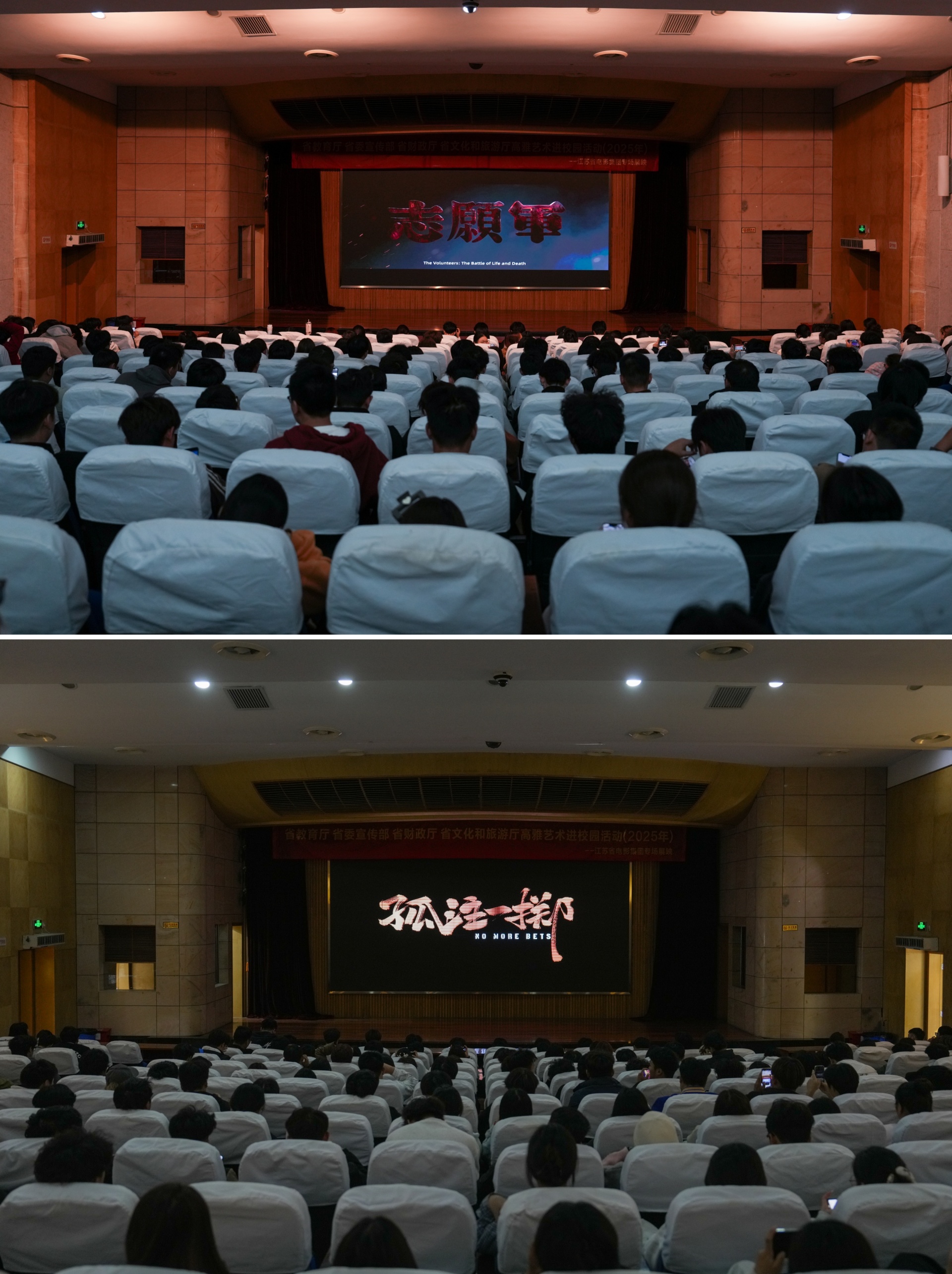 为深入推进天博体育 文化建设,深化爱国主义教育,发挥优秀影视作品的思想引领作用,10月23日下午,天博体育 联合江苏省电影集团在报告厅举办“青春光影 逐梦未来”主题电影专场放映活动。本次活动精选两部兼具思想深度与艺术价值的影片《孤注一掷》《志愿军:存亡之战》,通过光影艺术为师生呈现了一场震撼心灵的精神盛宴,吸引近七百名师生到场观影,其中《志愿军:存亡之战》以其厚重的历史底蕴和强烈的情感共鸣,成为全场瞩目的焦点。
