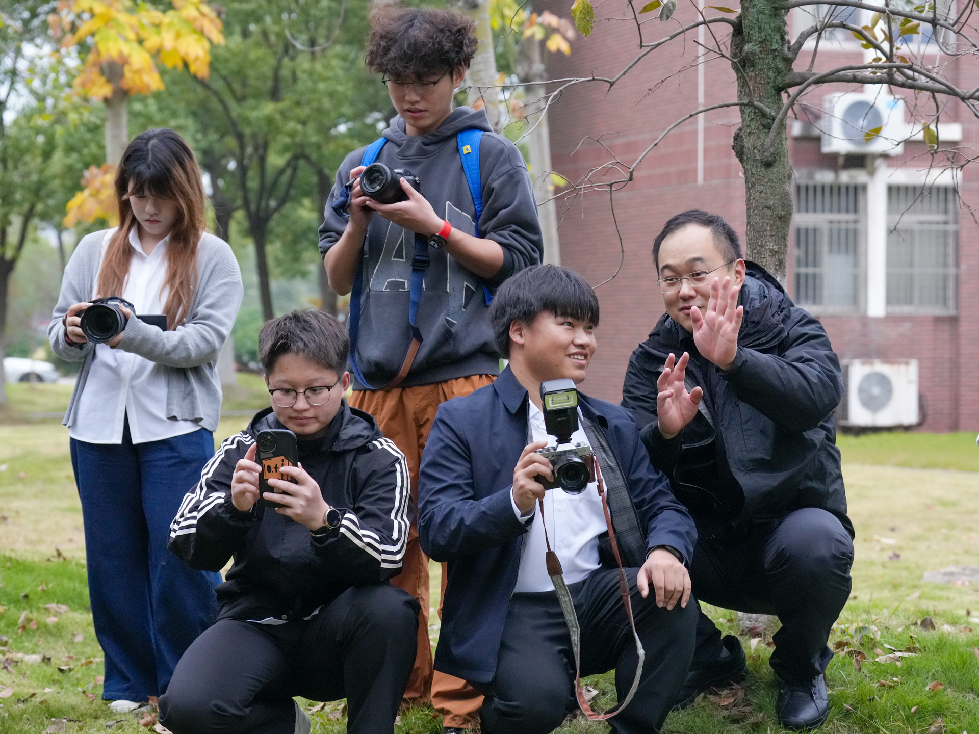 里进行实践拍摄,针对构图技巧、光线运用以及设备操作等方面进行详细指导。在作品点评环节中,张正对同学们的拍摄水平表示肯定,同时对每位同学照片中存在的问题进行了分析并提出改进方法,活动现场气氛高涨,掌声与笑声此起彼伏。师生们在问答环节中畅所欲言,思想的火花在交流与碰撞中频频闪现。