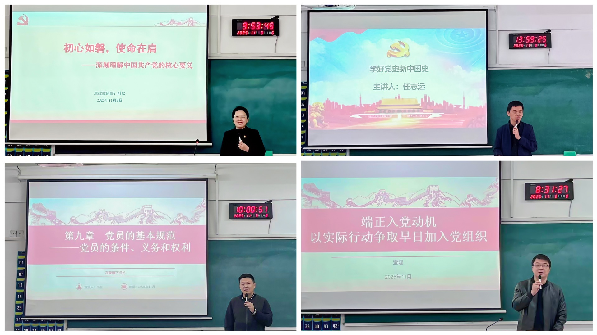 此次培训邀请了思政教研部叶欢、任志远,民用航空系党支部书记查理、基础教育系党支部书记包毅四位老师,围绕党的创新理论、中国共产党的性质宗旨、党史和新中国史、中国共产党党员的基本条件、义务和权利等方面,对入党积极分子进行系统的党的理论知识培训,帮助他们进一步提高政治素质,端正入党动机,坚定理想信念,为早日成为一名合格的共产党员打下坚实的基础。