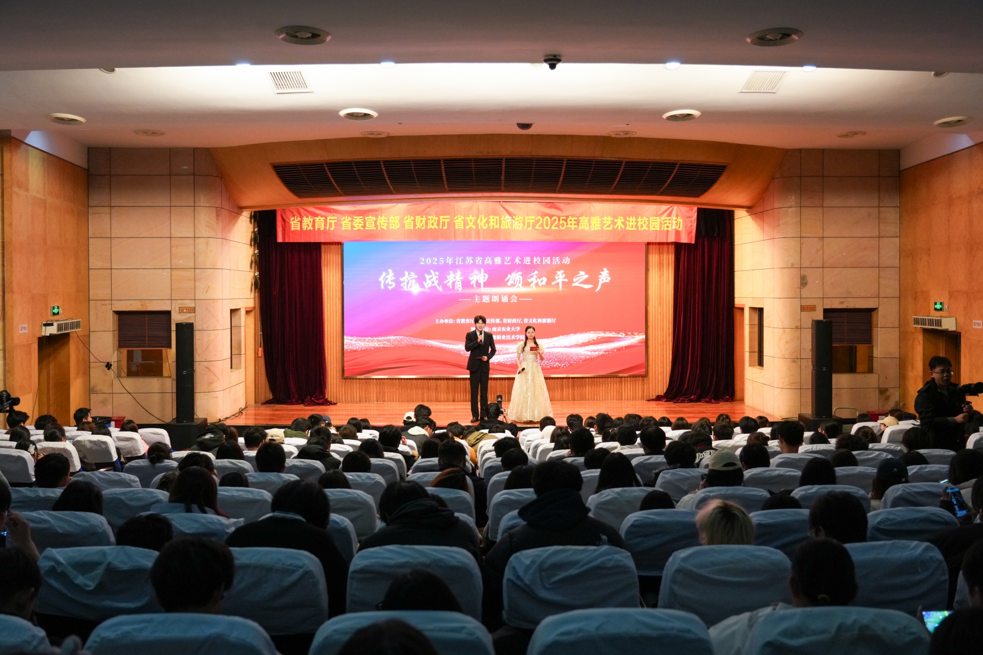 为铭记历史、弘扬伟大抗战精神,11月30日,天博体育 联合南京农业大学在报告厅举办《“铭记历史·珍爱和平”纪念中国人民抗战胜利暨世界反法西斯战争胜利80周年朗诵会》。现场350余名师生共同观看这场震撼心灵的朗诵盛宴,在经典诗词中重温烽火岁月,接受了一场深刻的爱国主义教育。