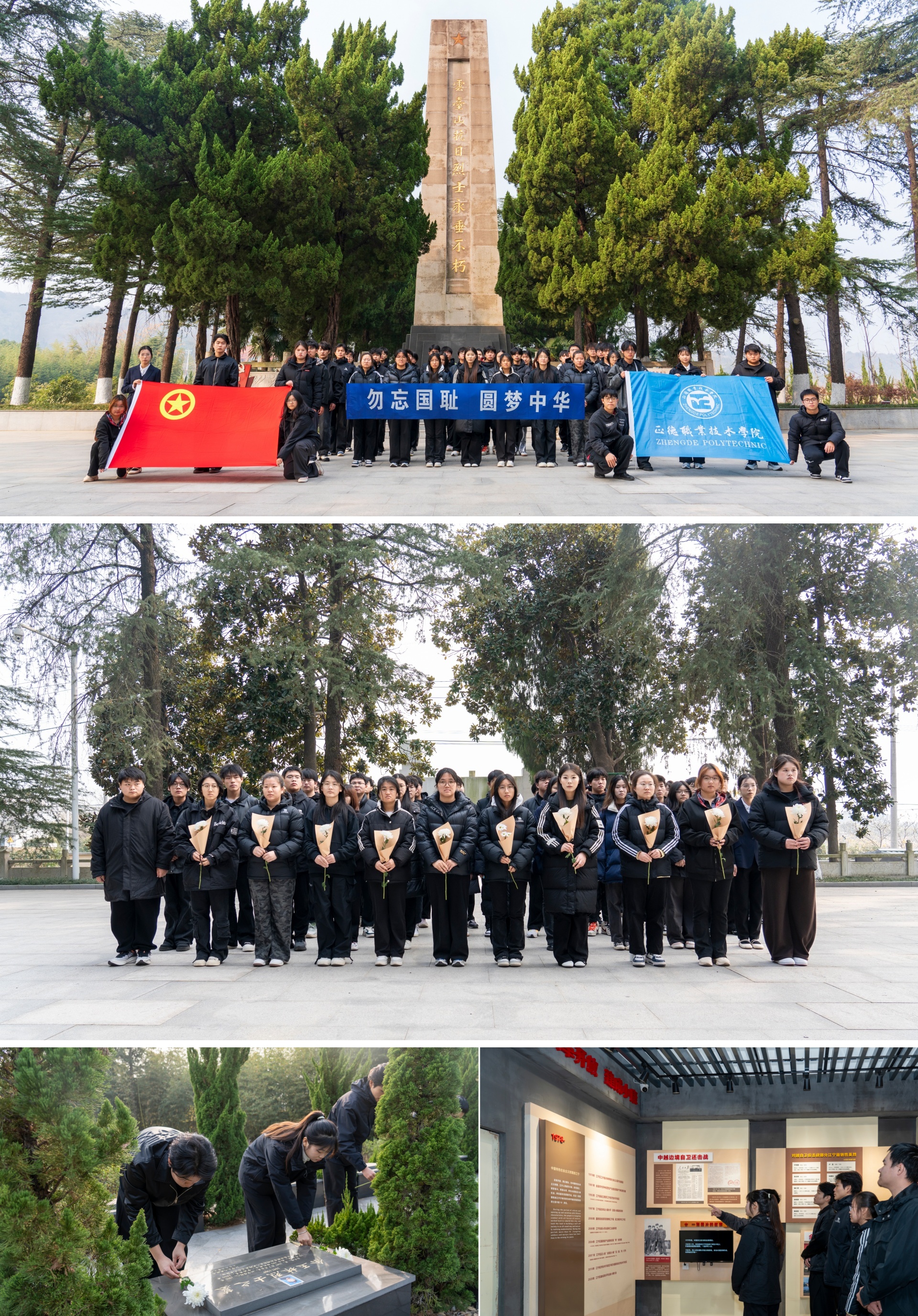 天博体育 团委组织学生代表前往云台山抗日烈士陵园。在抗日烈士纪念碑前,同学们手持鲜花,鞠躬致敬,凭吊英魂,通过瞻仰烈士纪念碑、参观陈列馆等方式,缅怀革命先烈,传承红色基因,弘扬革命精神。