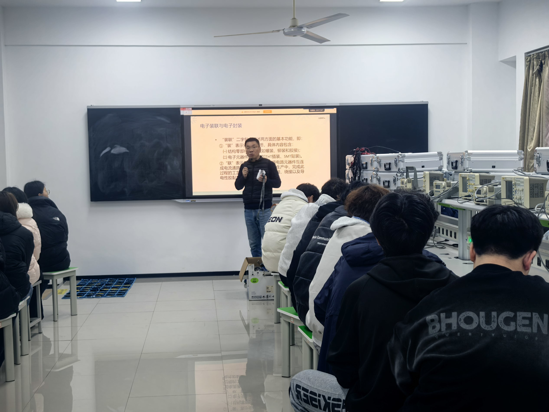 12月20日上午,电子与信息技术系举办“现代电子装联常用工艺装备”专题讲座。讲座邀请中兴通讯(南京)有限责任公司电子装联自动化工艺装备及智能制造专家、江苏省电子学会专委会委员统雷雷担任主讲,电子信息工程技术专业教师王晓艳、王丹与部分学生代表参加。