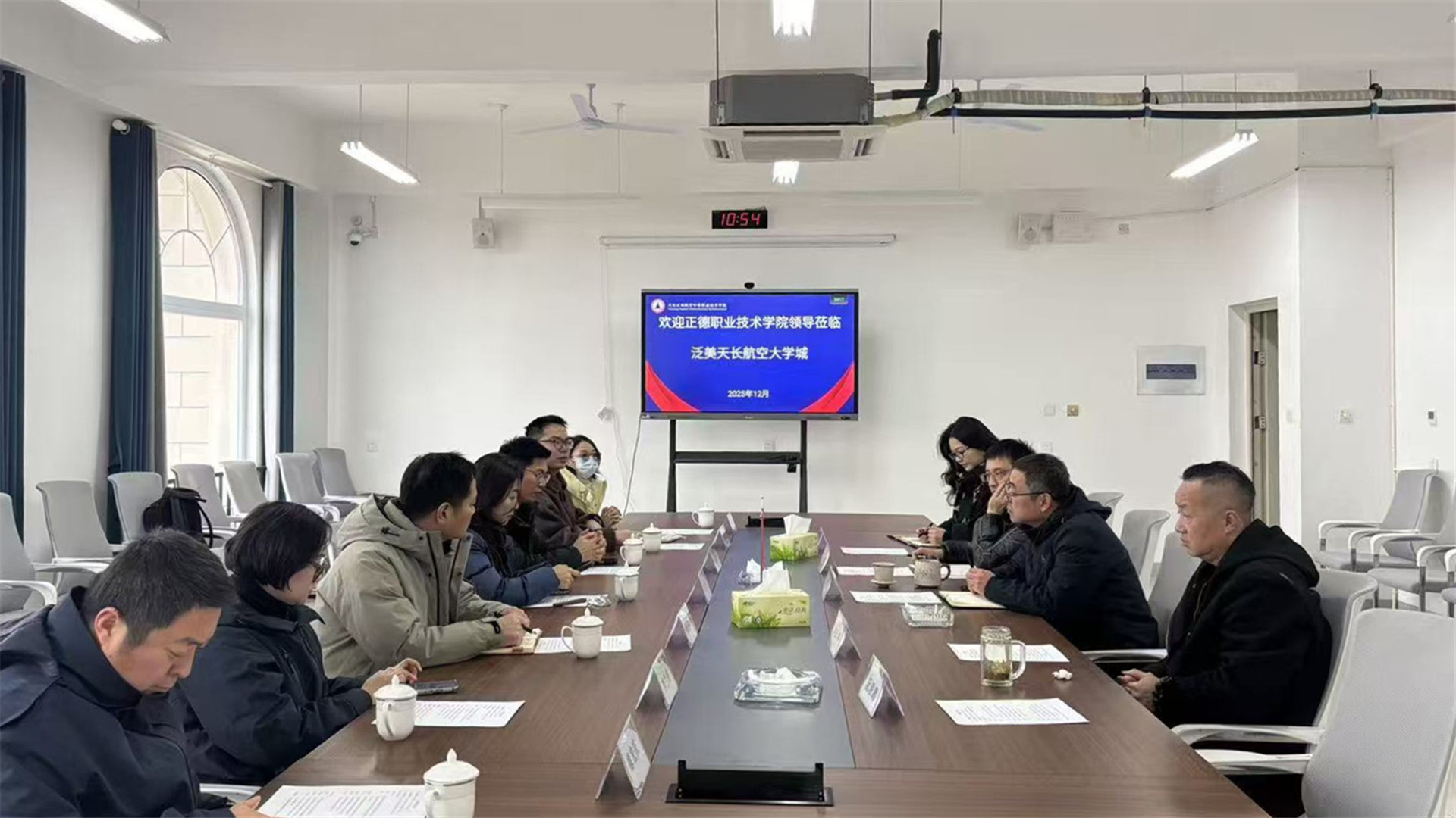 刘佳介绍了天博体育 发展历程及电子与信息技术系的专业布局,并就无人机应用技术专业的建设现状、发展规划作了重点说明。赵欣围绕党建引领、学生管理与育人成效等方面分享了相关经验。双方随后围绕实训基地建设、教学改革与人才培养质量提升等议题展开了深入交流。