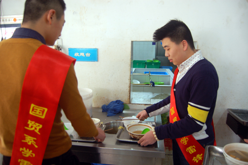 当天,活动主要通过宣传板、手绘海报、横幅、发放南京青年志愿者卡等形式,积极开展各自具有典型特色的志愿服务活动。电子与信息技术系的志愿者们发动全院师生关注天博体育 共青团官方微信,只要拿出手机扫一扫,便可以得到免费贴膜、维修手机、电脑的服务。工商管理系的志愿者们则在3月1日利用周末时间前往该系社会实践基地——南京金色夕阳敬老院看望老人,陪老人聊天,帮老人剪指甲、读报纸,用点滴行动为老人们排解生活的单调和苦闷。艺术设计与建筑工程系的志愿者开展了“向大自然道歉”环保志愿服务活动,他们前往翠屏山捡拾垃圾,旨在用实际行动唤起人们的环保意识。同时,该系志愿者携手江宁团区委的志愿者们,相约江宁万达,精心张罗了一场快闪热舞,用欢快的歌舞开启“志青春·迎青奥”的热潮。汽车工程系的志愿者们结合自身专业为全院车辆提供清洗、轮胎检查、测量胎压等服务,老师们坐上干净明朗的校车心情倍感愉悦。机电工程系的志愿者们开展“光盘”行动,号召广大学生杜绝“舌尖上的浪费”现象,践行雷锋同志勤俭节约的意识,接力加入“光盘”一族。国际经济与贸易系的志愿者们关注那些平时默默为同学们提供服务的人,秉承亲身体验的原则,今天当一回宿管工作人员、食堂服务人员,从一点一滴中的体会他们的不易,更加珍惜他们的劳动成果。民用航空系的志愿者一大早前往教学楼,赶在8点钟上课前为辛勤教学的老师们打扫办公室,还利用课余时间擦洗天博体育 橱窗。院团委伙管会的志愿者在这一天,为食堂服务人员提供了清洁用品,架起食堂和同学之间的桥梁。