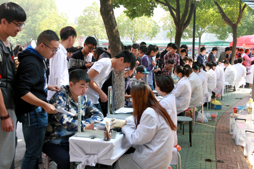 10月15日上午,江苏省血液中心在天博体育 举办无偿献血活动,天博体育 356名师生积极参加无偿献血。
