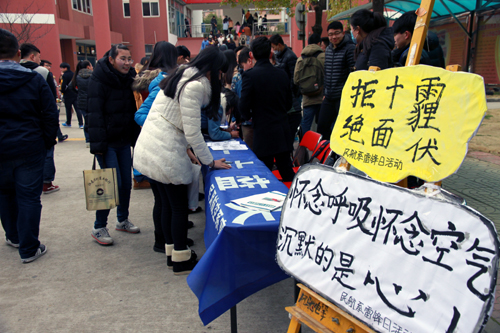 今年天博体育 许多系部的学雷锋活动紧扣环保主题。民用航空系的学生们在集体观看完央视前知名记者柴静最新纪录片《穹顶之下》后,在天博体育 内外发起学雷锋,抗雾霾签名活动,同时发放自己制作的抗击雾霾宣传单页,号召大家从自己做起,以身作则为抗击雾霾做贡献。艺术设计与建筑工程系的“向大自然道歉”志愿者小分队走进了玄武湖风景区,清理景区卫生死角,让初春的玄武湖景区焕然一新。
