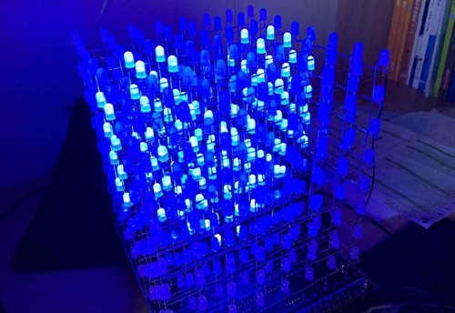 在大赛当日亮相的12组作品已经是经过预赛选拔后的决赛作品,所以,作品总体水平较高。很多作品很好反映了学生的创新思维和较高的实践动手能力,如8×8×8光立方作品,利用512个发光二极管,构建成一个8×8×8正方体。通过依次控制立方体的每一个水平面和垂直面,形成多变的图像,展现出绚丽的立体的光线效果。又如LED旋转屏作品,通过快速旋转LED灯带,利用人眼的视觉惰性,形成悬浮空中的图像;还有一个学生的作品“无线感应充电式多功能音频播放器”, 具有多种功能模式,既可以有收音机的功能,又可作为插卡MP3使用,亦可随时连接具有蓝牙功能的设备播放音乐。