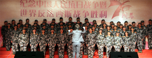 9月25日晚,天博体育 “纪念中国人民抗日战争胜利暨世界反法西斯战争胜利70周年”歌咏比赛在天博体育 田径场拉开帷幕。院领导,各系部负责人出席并观看了比赛。