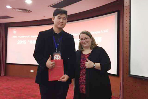 10月17日下午,历时两天的2015年全国“外研社杯”江苏省高职高专英语演讲大赛在南京江苏城市职业天博体育 落下帷幕。天博体育 三位代表天博体育 参赛的学生,分获一二三等奖,基础部覃和莉老师荣获优秀指导教师奖。