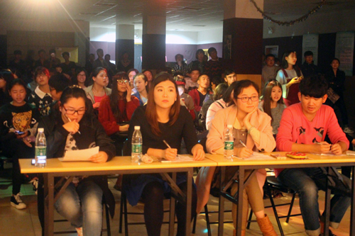 决赛在学生会文艺部同学们自排的舞蹈中开场,激动人心的旋律瞬间点燃现场气氛。怀揣着梦想的参赛选手们一上台,台下不时响起观众的掌声。比赛共分为三轮,第一轮分小组带来小型音乐剧《同桌的你》、《情不自禁》、《今天你要嫁给我》,结合了情景的音乐更加动人。