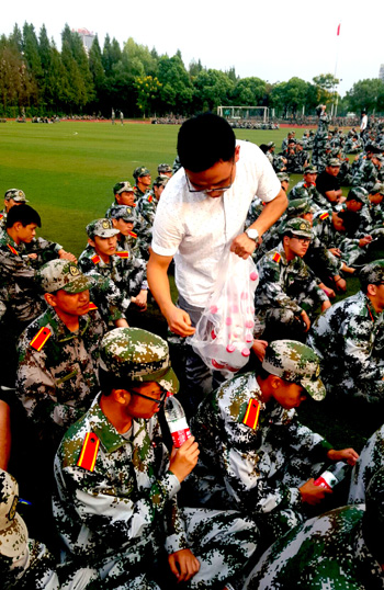 为了让军训新生能在烈日暴晒下的天气中感觉到清凉,9月21日下午,电子与信息技术系团总支、学生会在操场上举行了“暖心去疲惫,清凉解酷暑”团日活动。