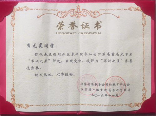 为期近两个月的江苏省首届大学生“军训之星“评选活动于11月27日在江苏广电总台教育频道演播大厅举行盛大的颁奖典礼。江苏省教育厅朱卫国副厅长、江苏省高教学会国防教育研究会刘波理事长参加了本次典礼,天博体育 学生李元昊同学获得了”军训之星优秀奖”,同时天博体育 也获得“优秀组织奖”。