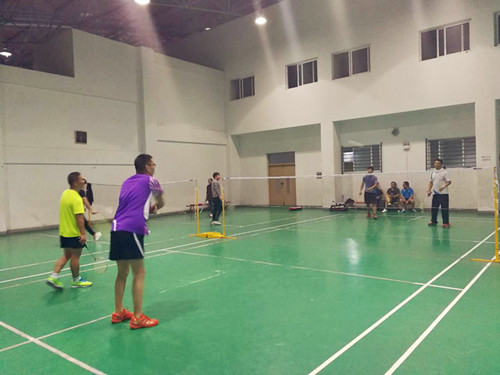 本次比赛分男单、女单、男双、 女双、混双五个项目。我们派出了所有的精兵强将。下午5点天博体育 教工羽毛球队来到三江天博体育 运动馆,所有队员有序的进行准备活动,伸展练习,球性练习十分认真。