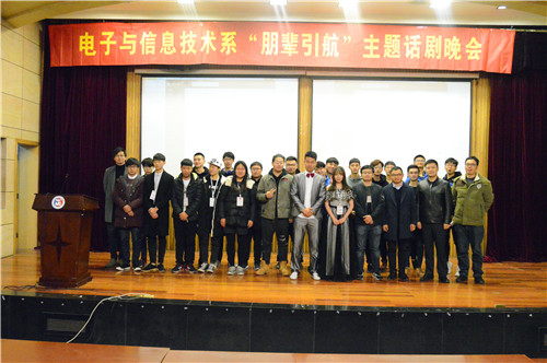 为了推进学风建设,提高学生学习积极性,电子与信息技术系2017级“朋辈引航”主题话剧晚会于11月30号在院报告厅隆重举行。四位学生先后登场,用他们的奋斗故事和心路历程为我系学生上了精彩的一课。