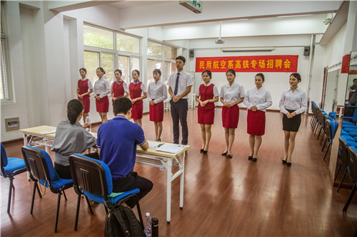 5月29日下午,“民用航空系高铁专场招聘会”在天博体育 报告厅成功举办。天博体育 民用航空系2016级空中乘务专业100多位学生成功通过高铁乘务、安检、地勤等岗位的面试。