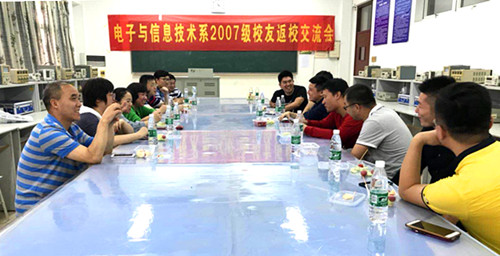 2018年6月9日下午三点,电子与信息技术系2007级电子信息工程技术专业的校友们回到阔别已久的母校,追忆同窗旧事,畅谈人生感悟,展望美好未来。他们在6205教室,他们曾经学习的地方,举行校友返校交流会。交流会由电子与信息技术系副主任祝佳俊主持,徐宏庆、李倩、戴慧、张韬等专业教师,田彦华、华英与部分2007级学生代表共同参加此次活动。