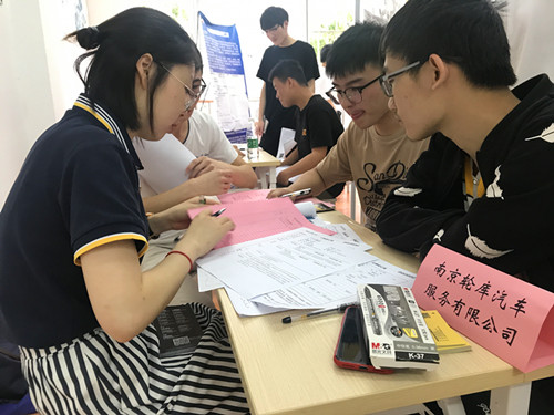 6月22日,上汽集团车享家、江苏中驰、一汽大众、南京朗驰、南京华星汽车等十几家汽车企业来到天博体育 ,面向汽车工程系2016级“2+1”的学生招聘顶岗实习生。