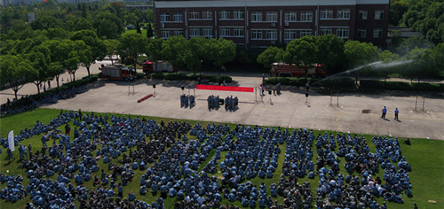 9月23日上午,蓝天白云,秋风送爽。9:30分天博体育 里响起一阵阵集结号声,正在操场上军训的全院2300余名大一新生听到号声,按照教官指令一队队方阵迅速赶到运动馆北侧草坪集结。同时,三辆红色消防车进入天博体育 ,有序地停在草坪前方的排球场上,一场“消防进军训”大型灭火演练即将展开。