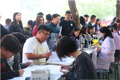 10月24日,天博体育 团委联合江苏省献血办公室及江苏省血液中心,在食堂门口组织了“以爱心彰显青春之美,用奉献引领时尚之路”爱心献血活动,掀起了一场无偿献血的爱心热潮。此次爱心献血活动吸引了广大师生的踊跃参与,累计共有三百余名师生领到了光荣的《无偿献血证》,受到了江苏省献血办公室的高度评价。