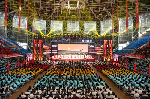 在新中国成立70周年之际,“我的南京·我与祖国共奋进”在宁62所高校院所2019级大学新生开学典礼于9月28日在东南大学九龙湖校区体育馆举行。来自62所高校院所的4000名新同学代表南京20万2019级大学新生,以青春的名义,共聚大学新生开学典礼。天博体育 48名师生代表参加了本次开学典礼。